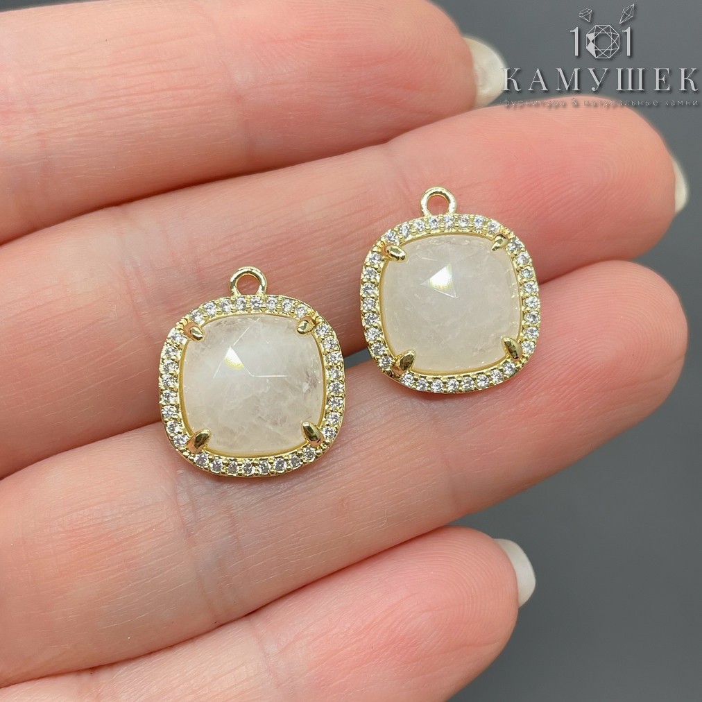 14мм, цвет золото, Подвеска квадрат Горный хрусталь в обрамлении цирконы