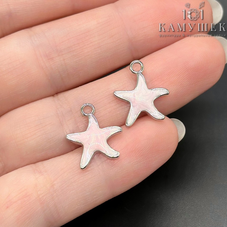 Подвеска морская звезда розовая эмаль, цвет сереюро 15 мм