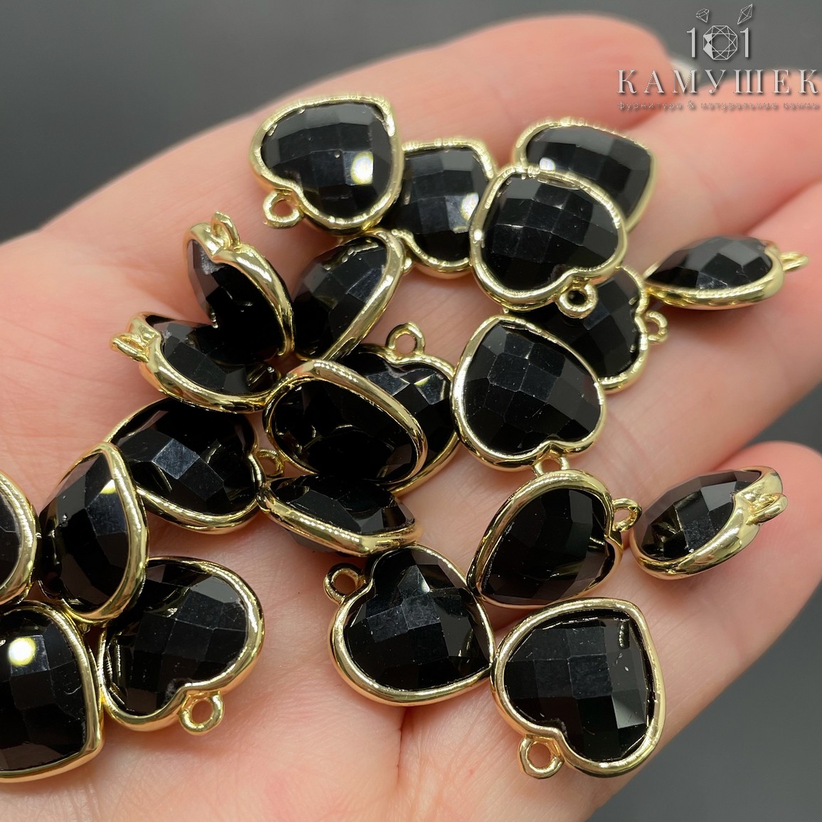 Подвеска сердце огранка агат черный, цвет золото 13х15