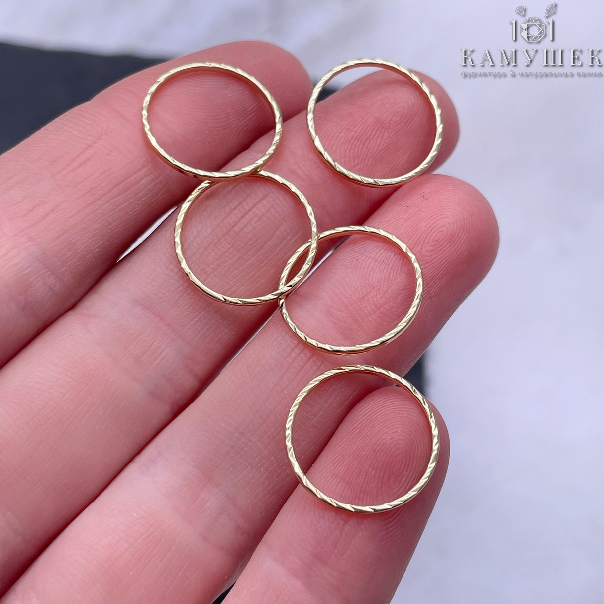 Подвеска кольцо рифленое уп. 5 шт., цвет золото 16 мм