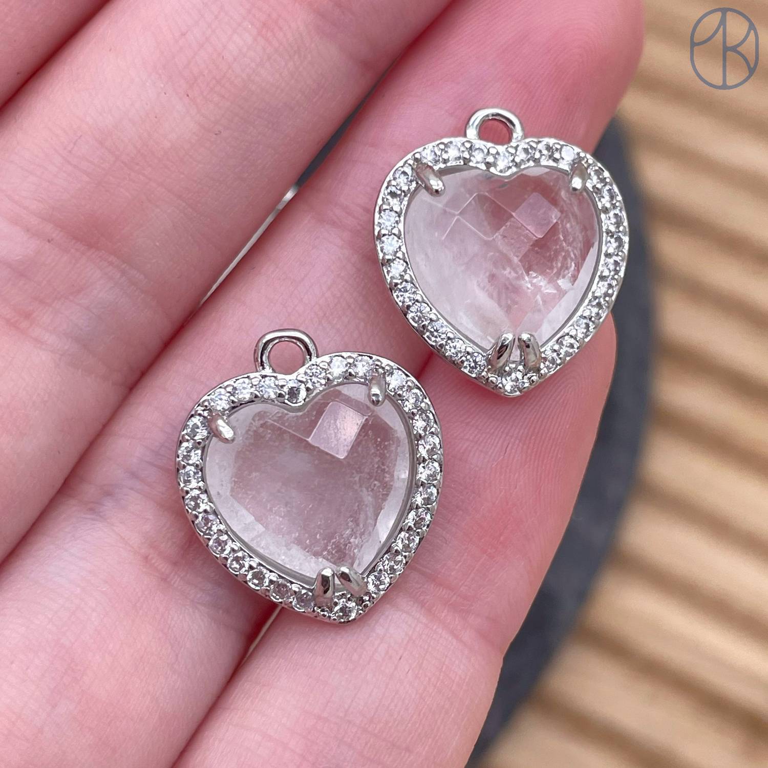 16*18мм, цвет серебро, Подвеска Сердце в обрамлении Горный хрусталь огранка цирконы