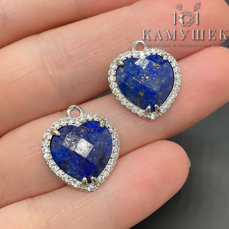 16*18мм, цвет серебро, Подвеска Сердце в обрамлении Лазурит огранка цирконы