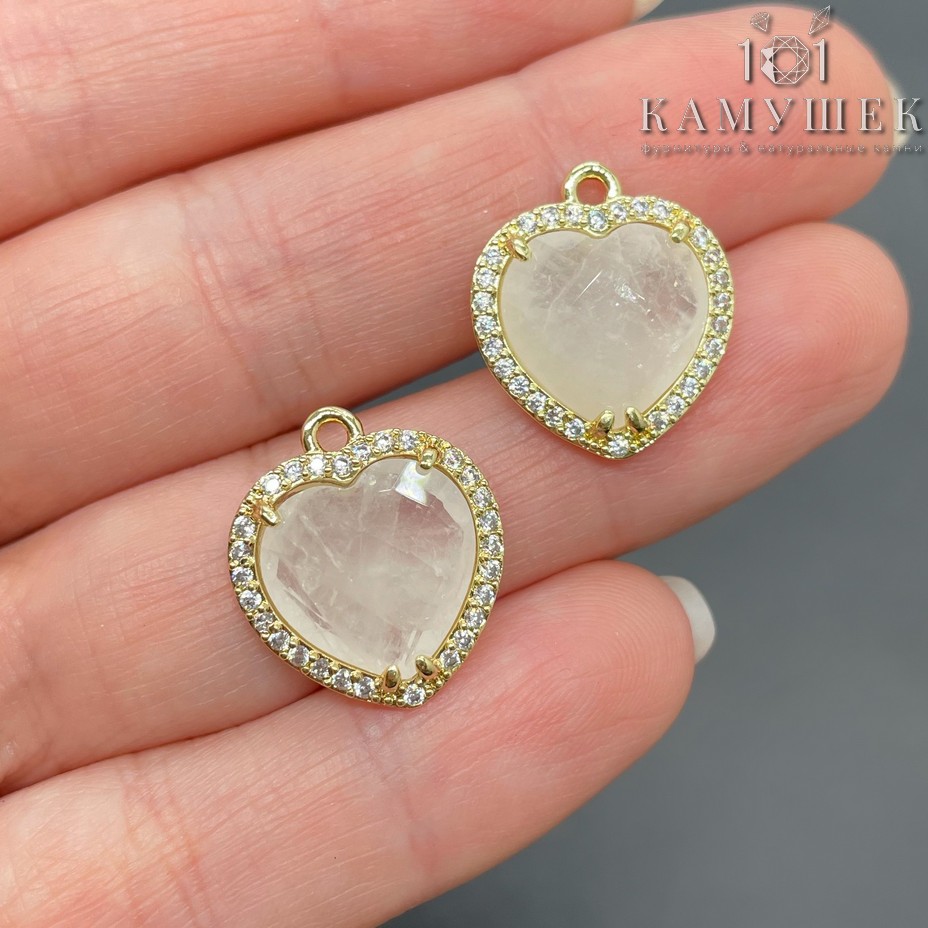 Подвеска сердце огранка цирконы горный хрусталь, цвет золото 16х18 мм