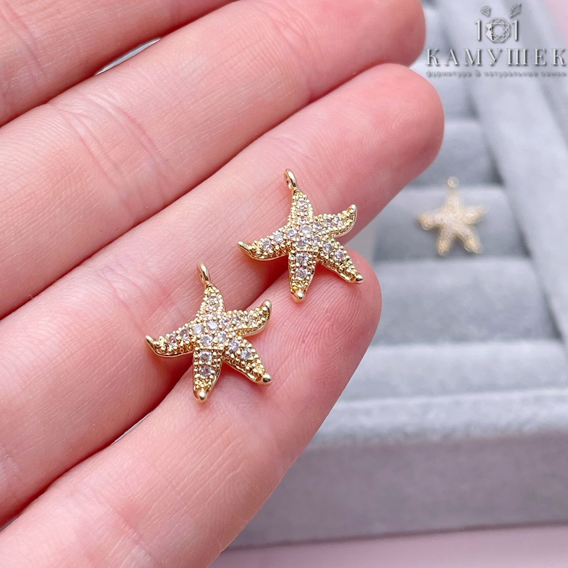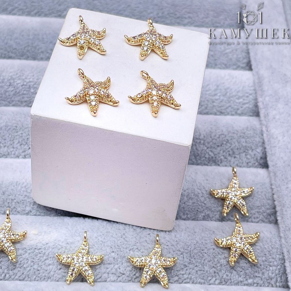 Подвеска морская звезда цирконы, цвет золото 13х14 мм