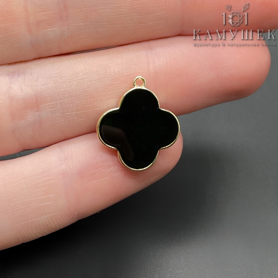 Подвеска Клевер черная эмаль, цвет золото 17x15 мм