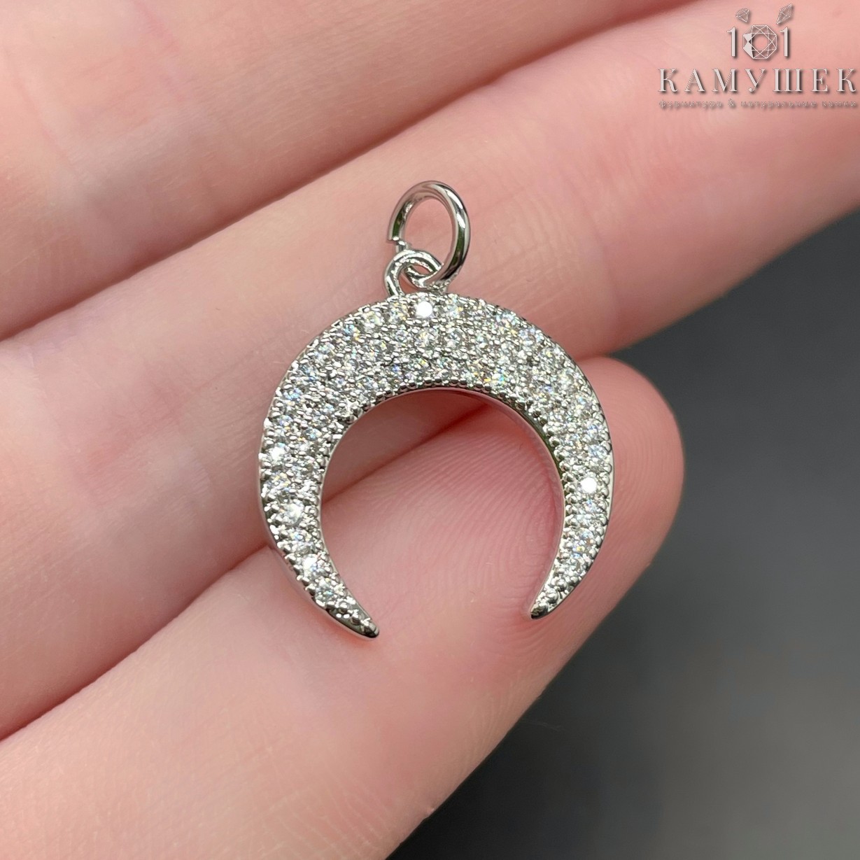 Подвеска лунница с цирконами, цвет серебро 17х16 мм