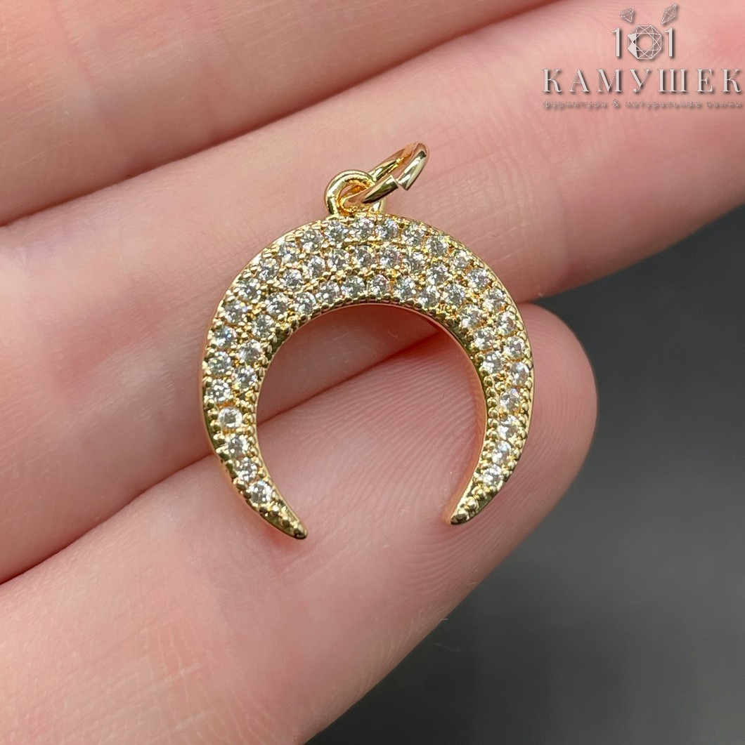 Подвеска лунница с цирконами, цвет золото 17х16 мм