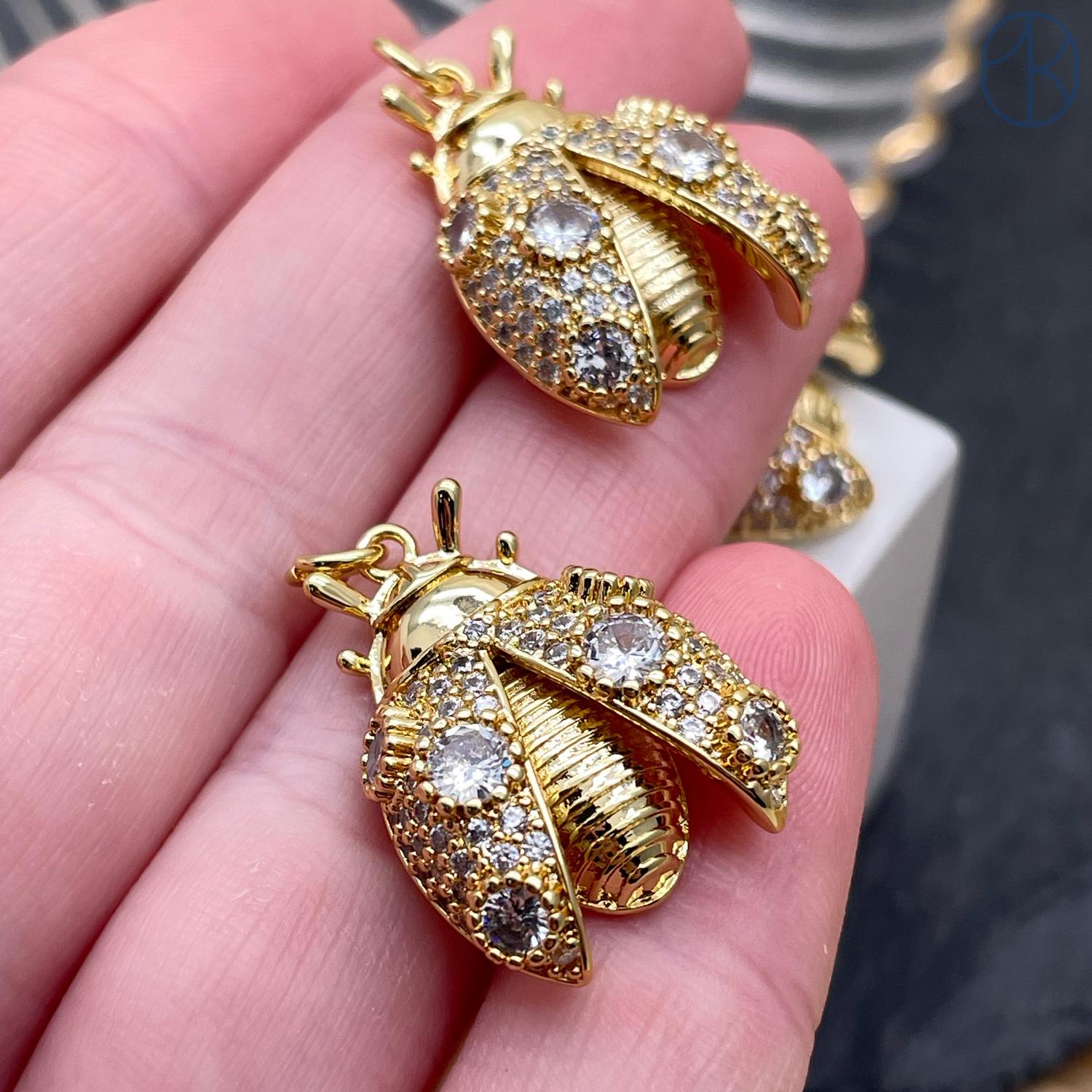 Подвеска божья коровка цирконы, цвет золото 24 мм