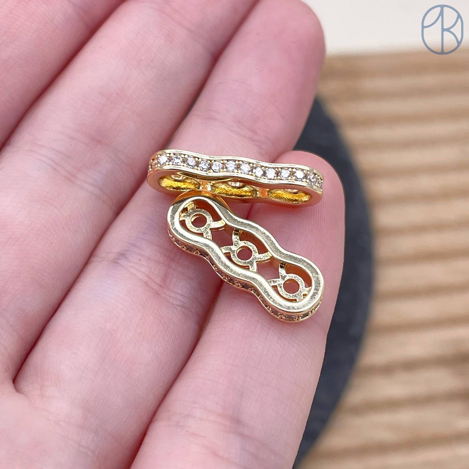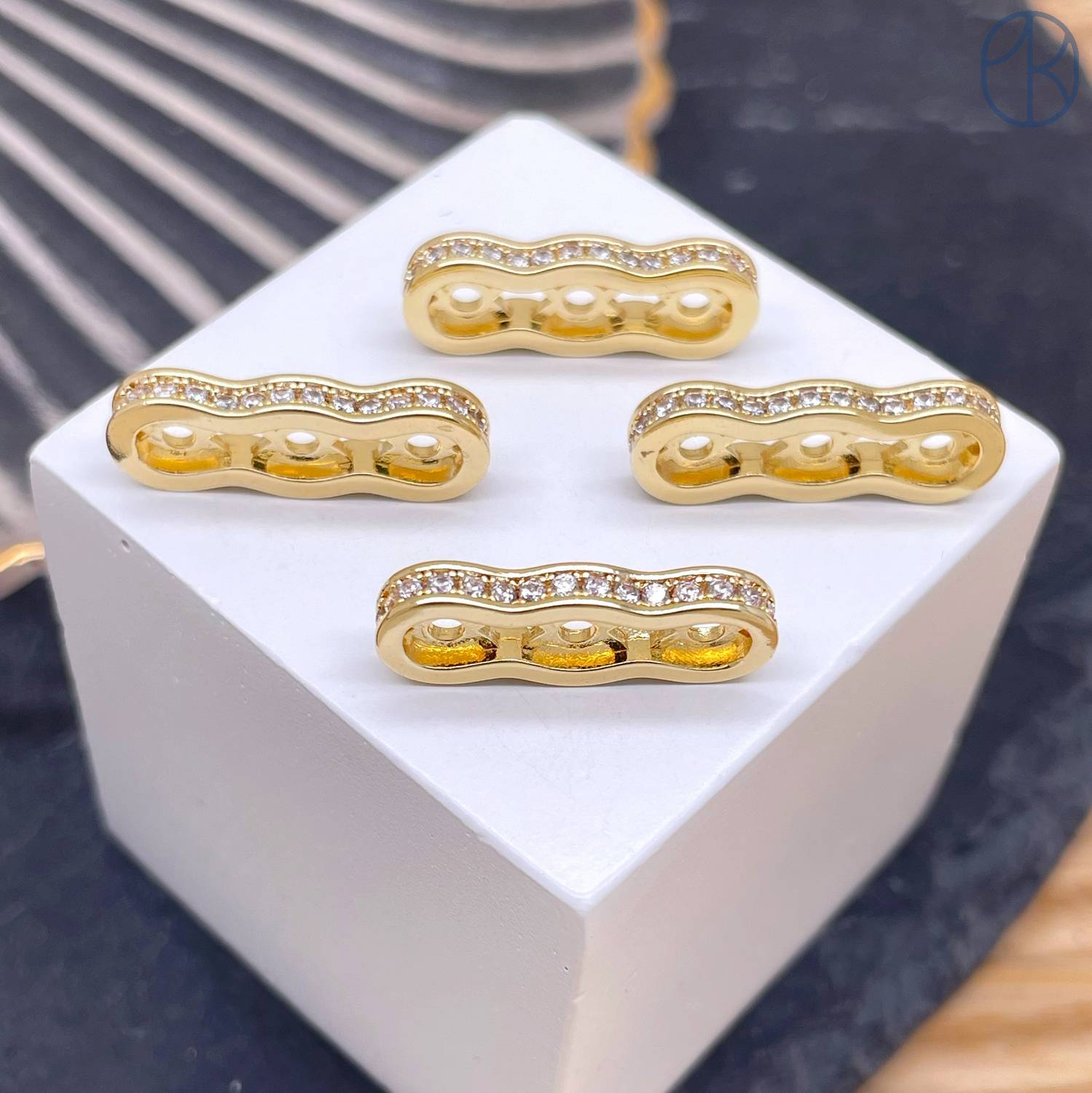 Бусина 3 ряда цирконы, цвет золото 19х7 мм