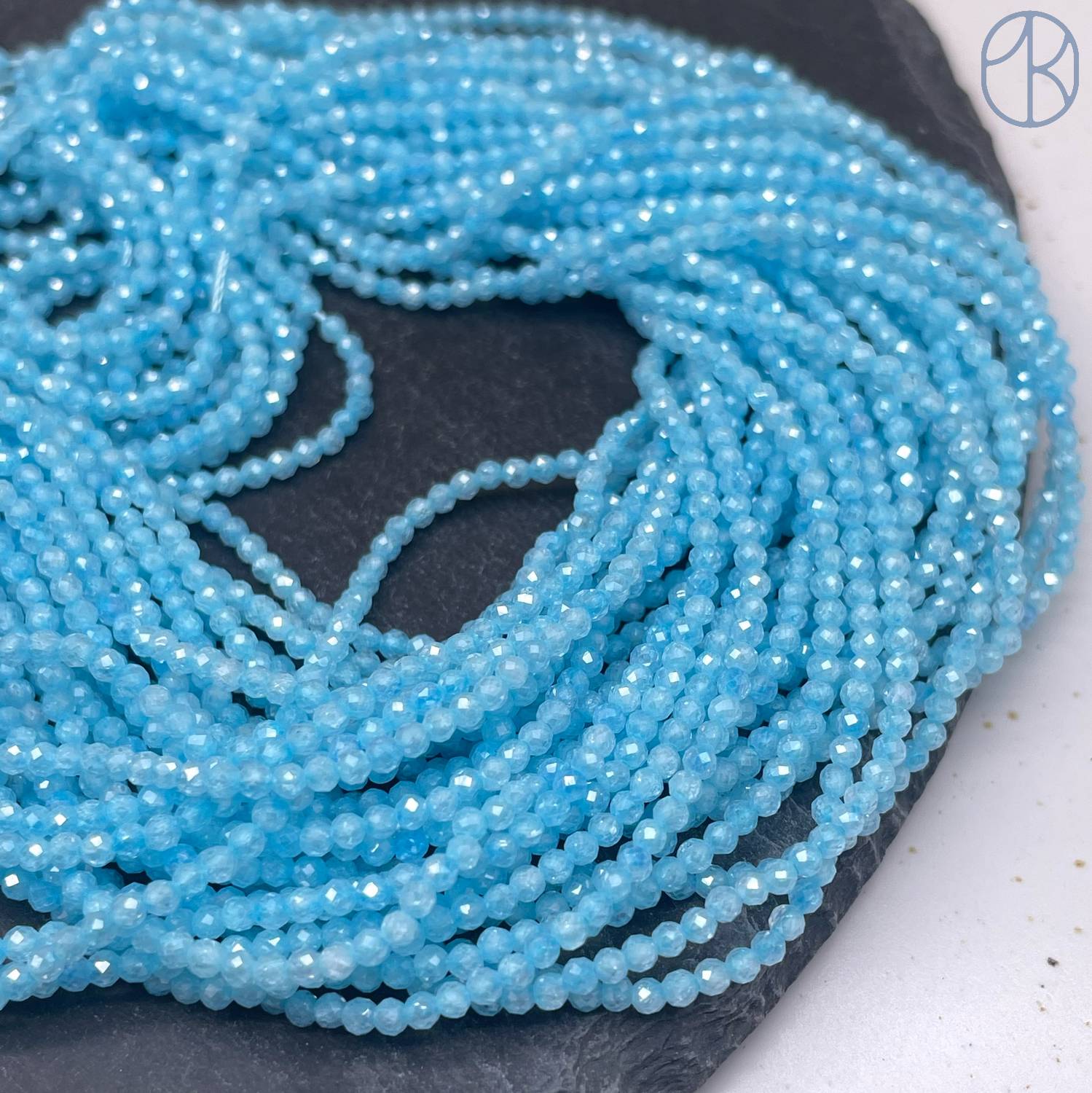 2 мм, Циркон огранка светло-голубой с эффектом снежного кварца (кубический цирконий, фианит)