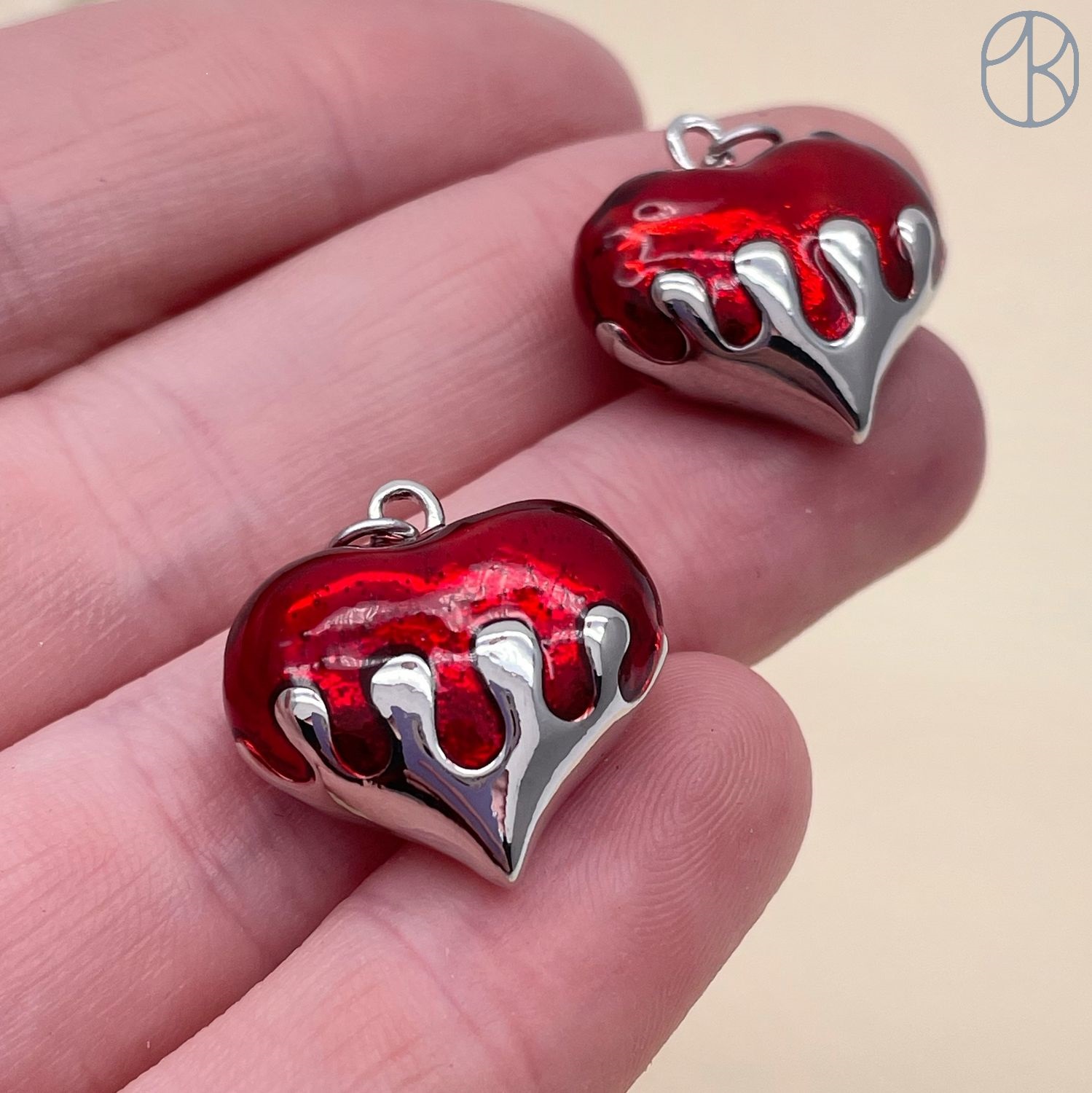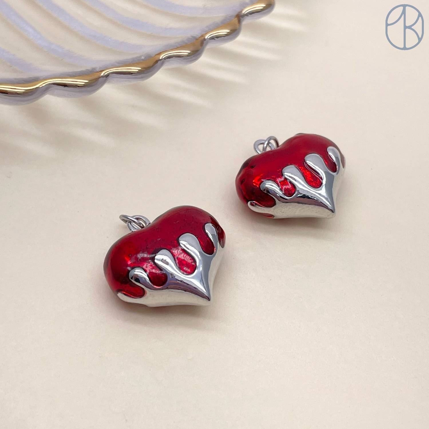 20*19 мм, цвет серебро, Подвеска сердце красная эмаль