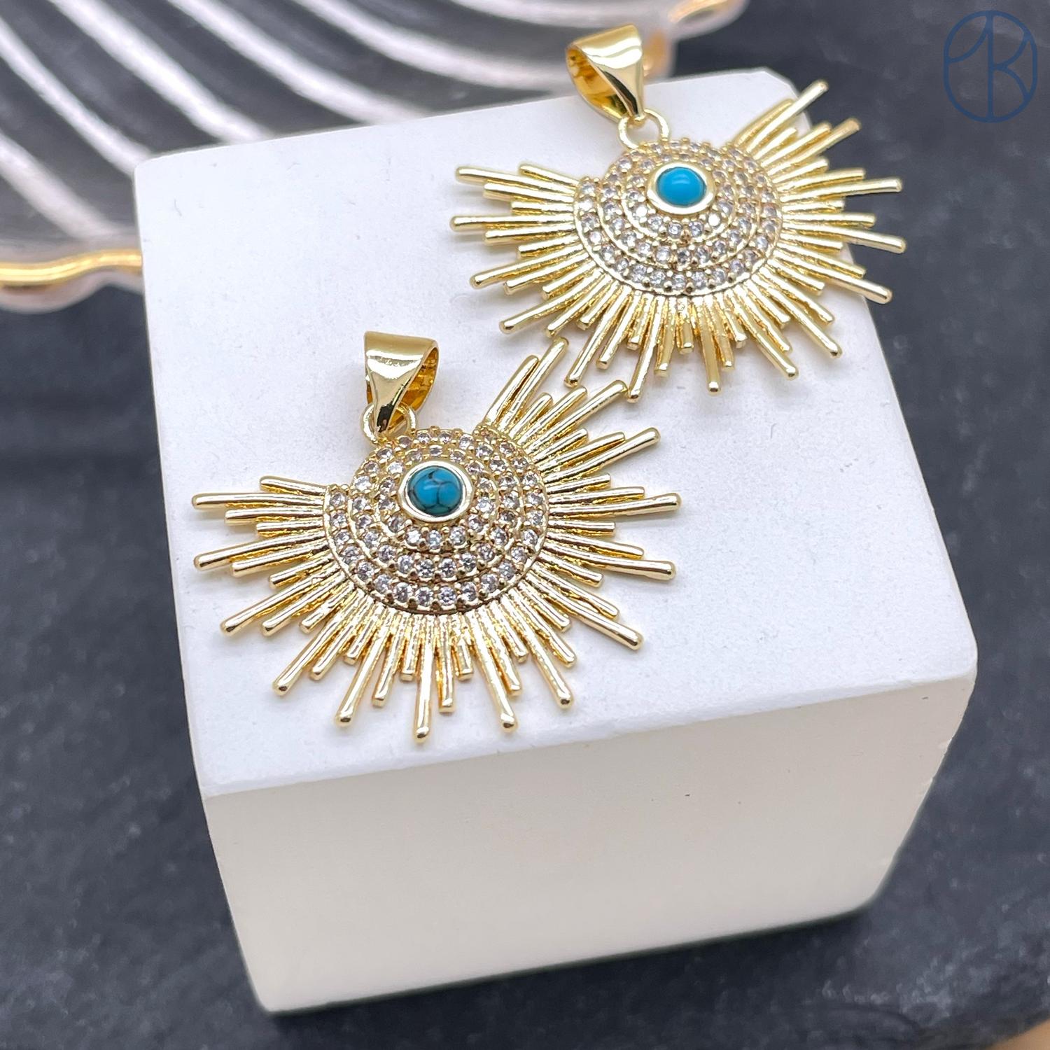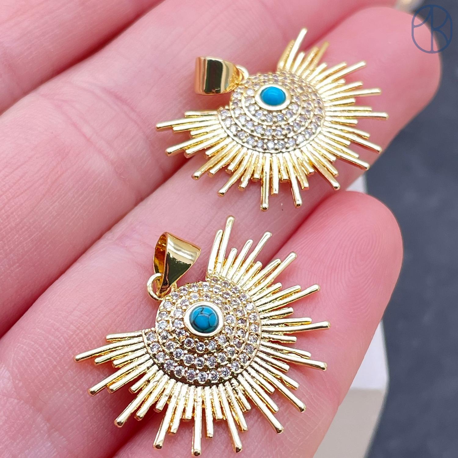 Подвеска солнце лучи цирконы, цвет золото 20х26 мм