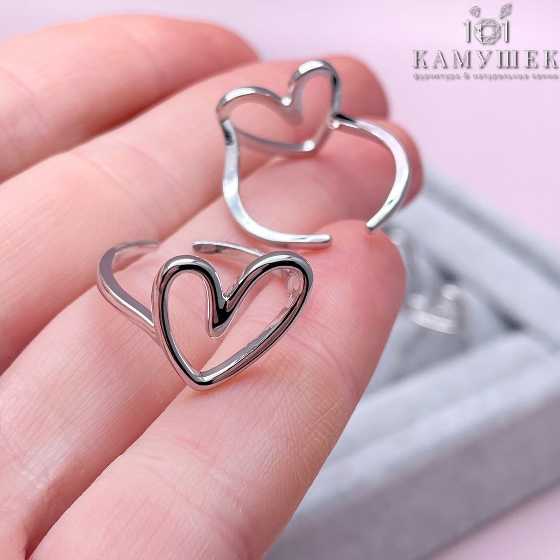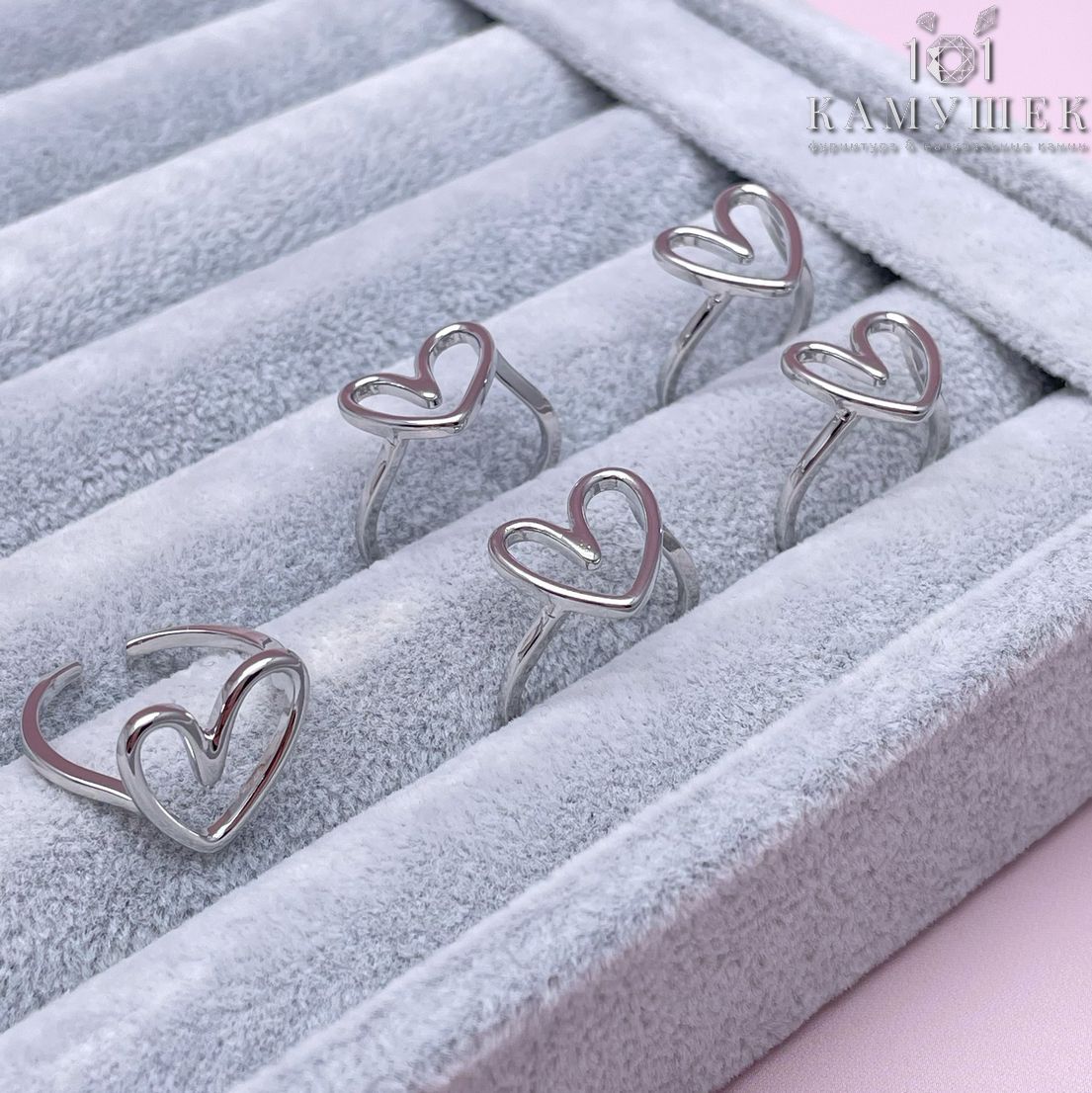 20мм, Цвет серебро, Кольцо безразмерное Цветок с цирконом