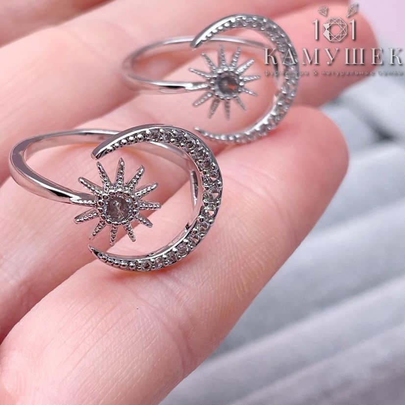 Кольцо Полумесяц и звезда, цвет серебро 20 мм