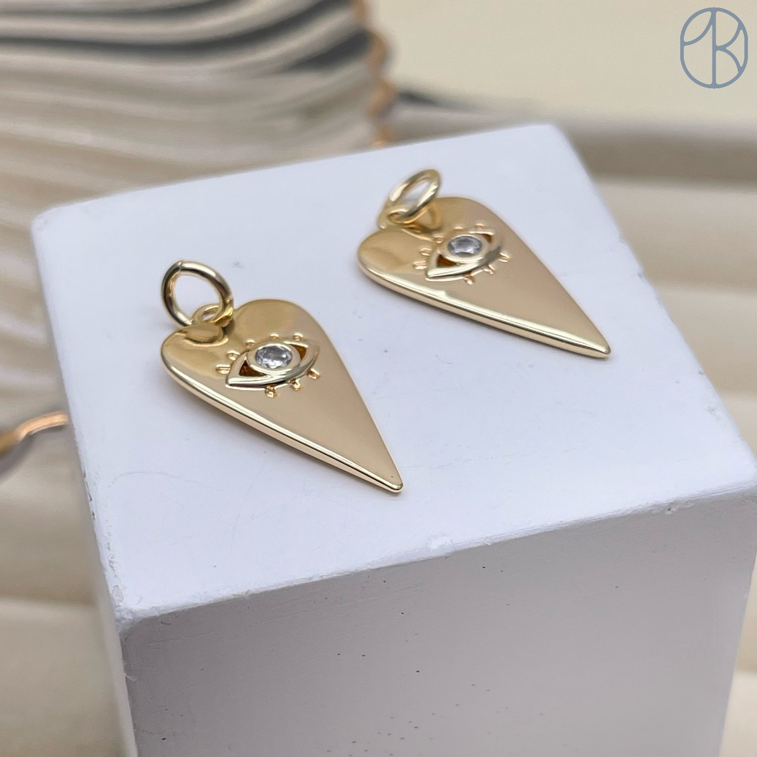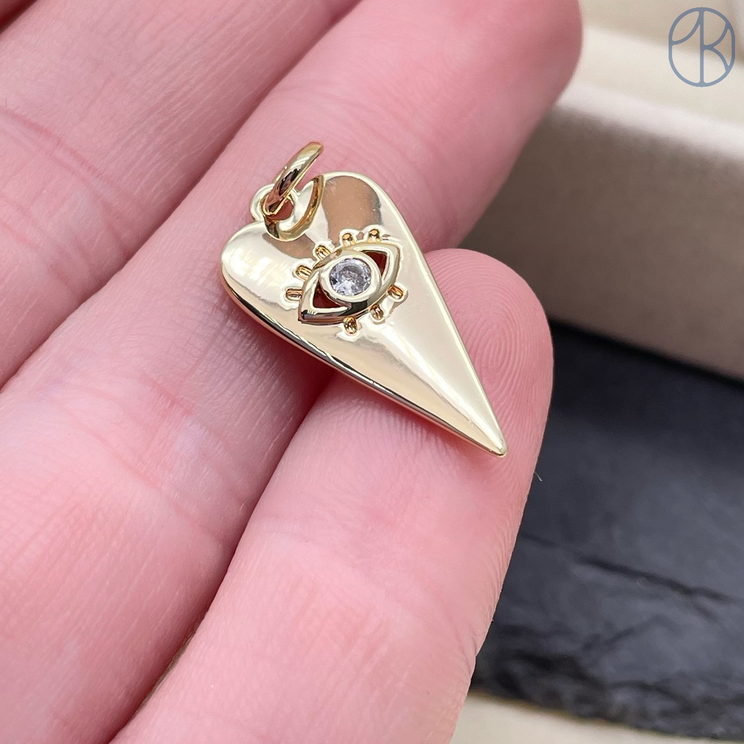 Подвеска сердце глаз циркон, цвет золото 20х11 мм