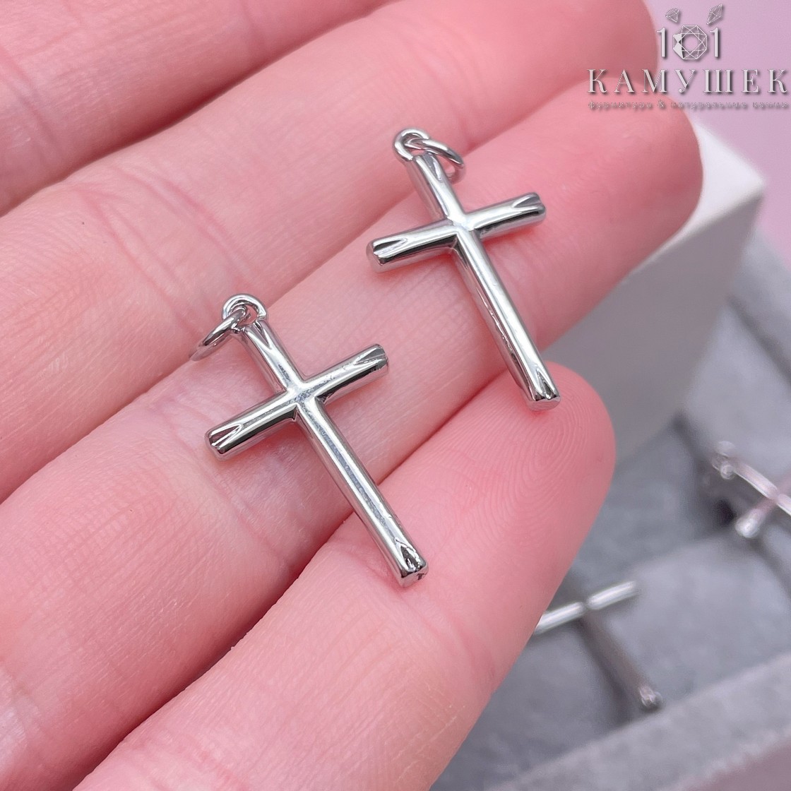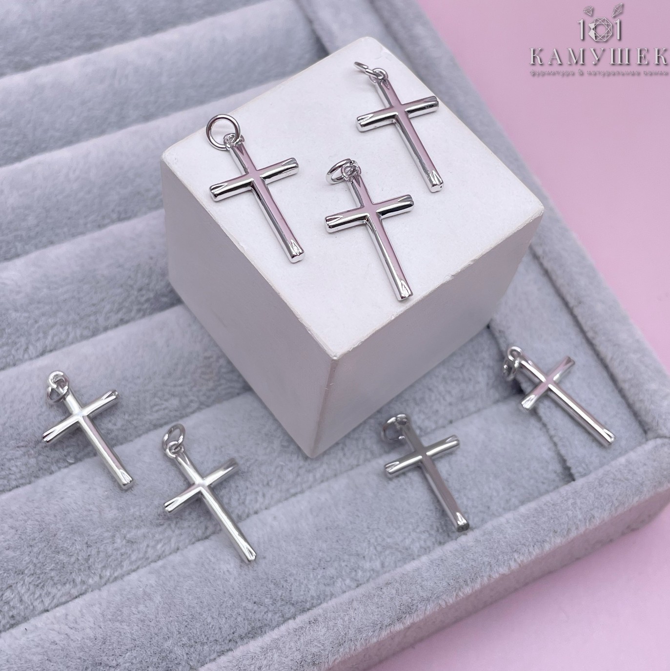 Подвеска крест гладкий, цвет серебро 23х13 мм
