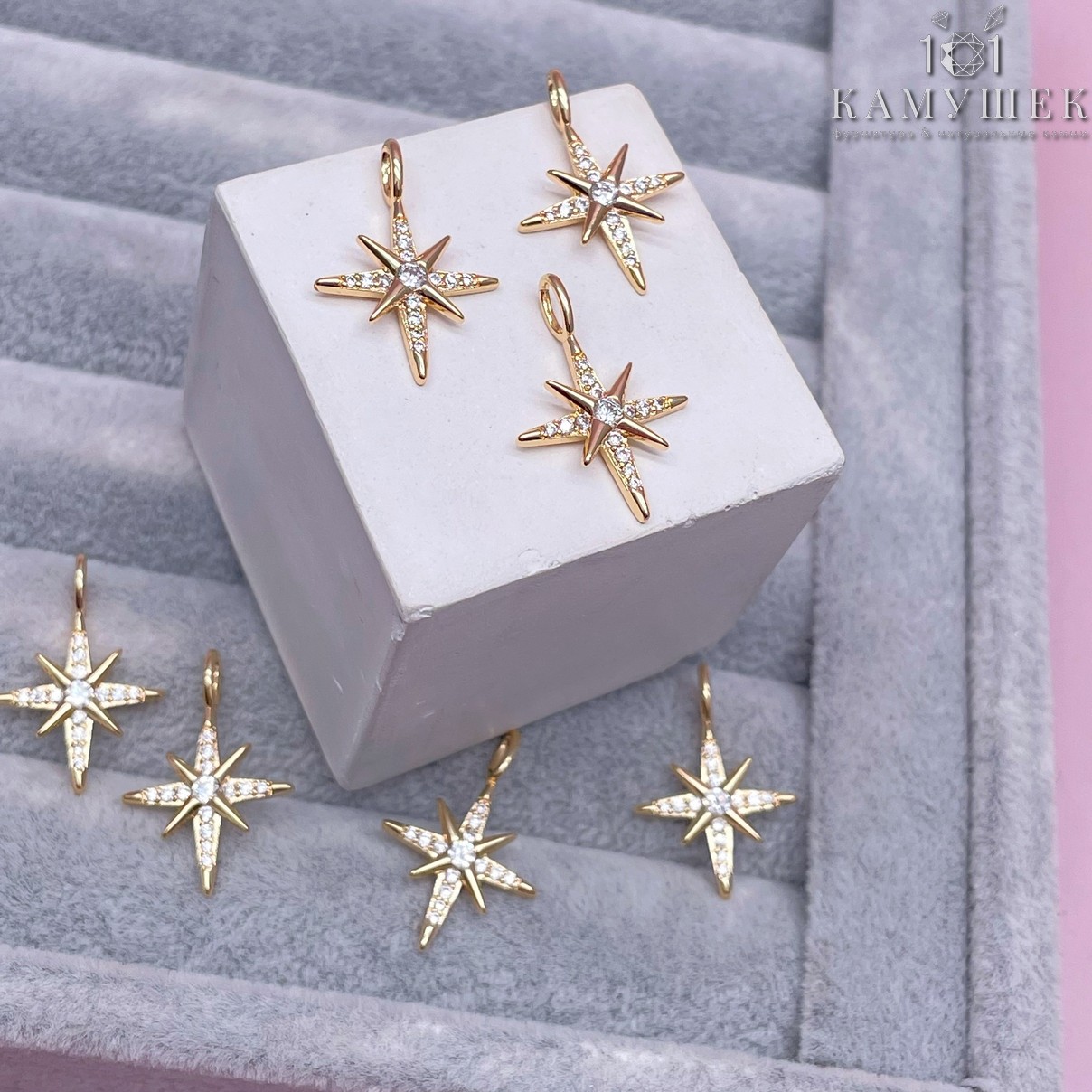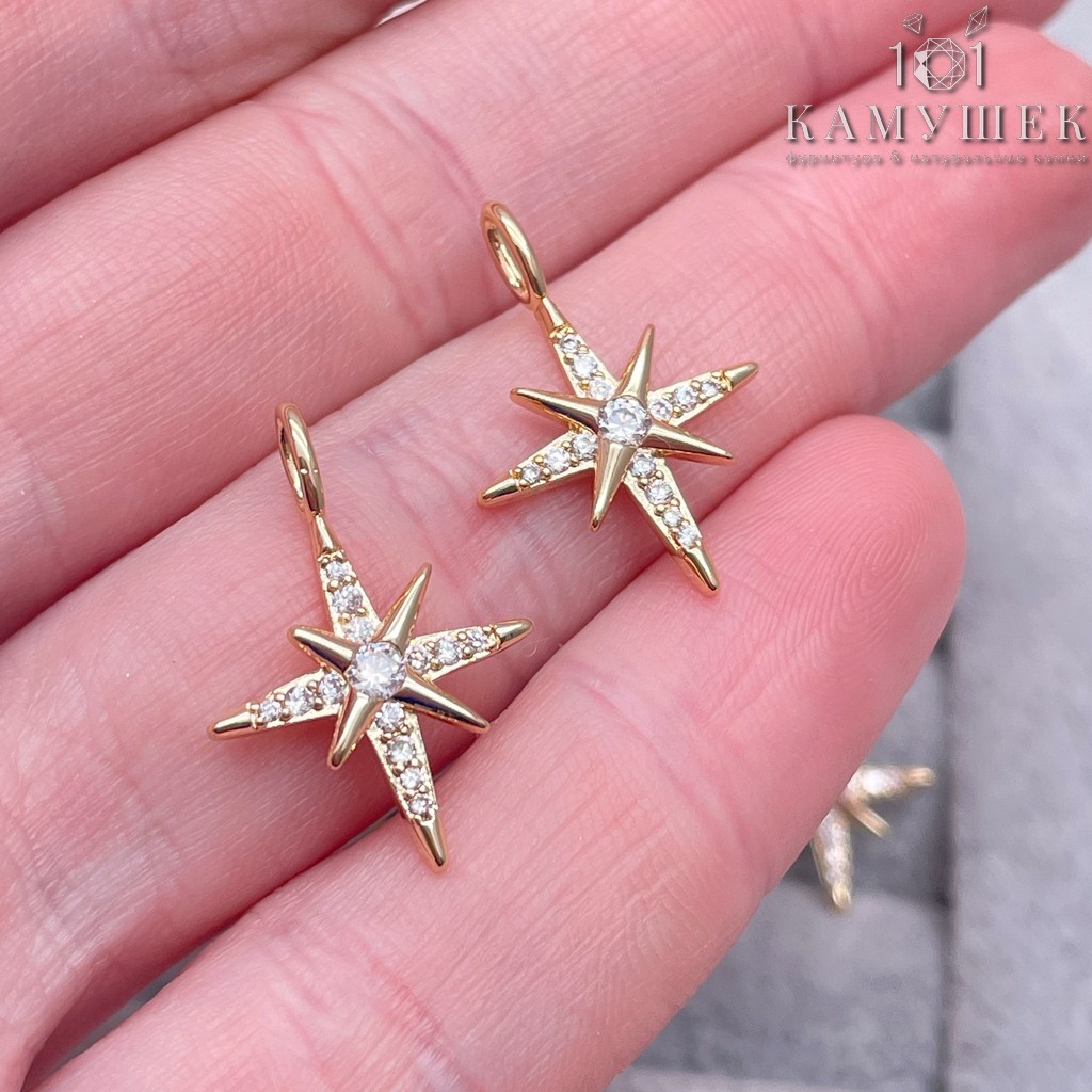 Подвеска северная звезда с цирконами, цвет золото 22х15 мм