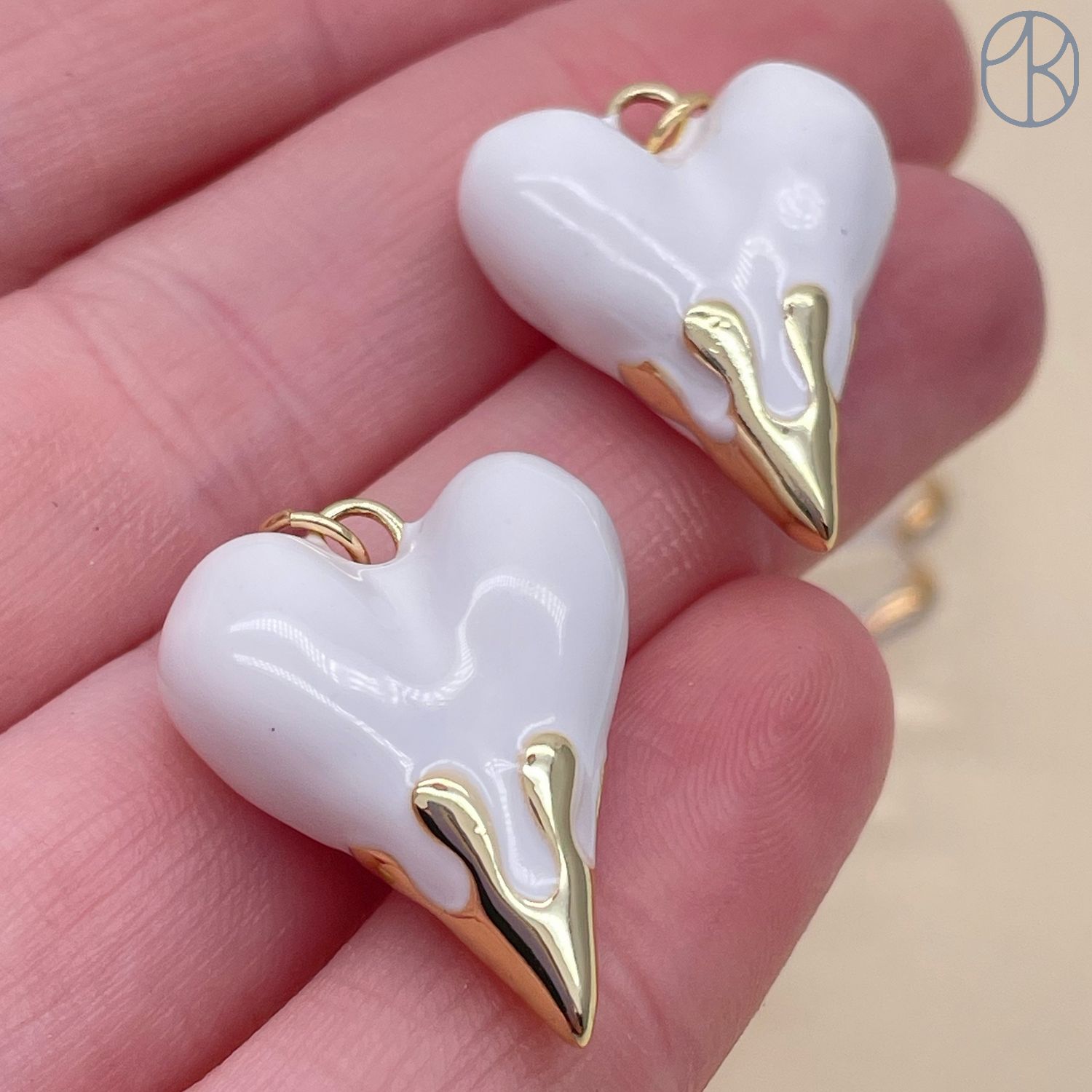 24*19 мм, цвет золото, Подвеска сердце белая эмаль