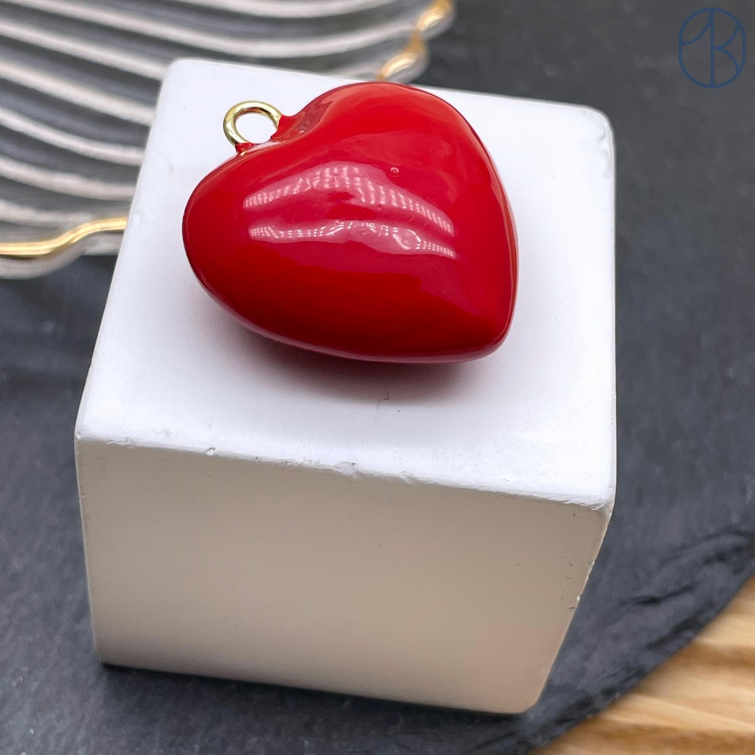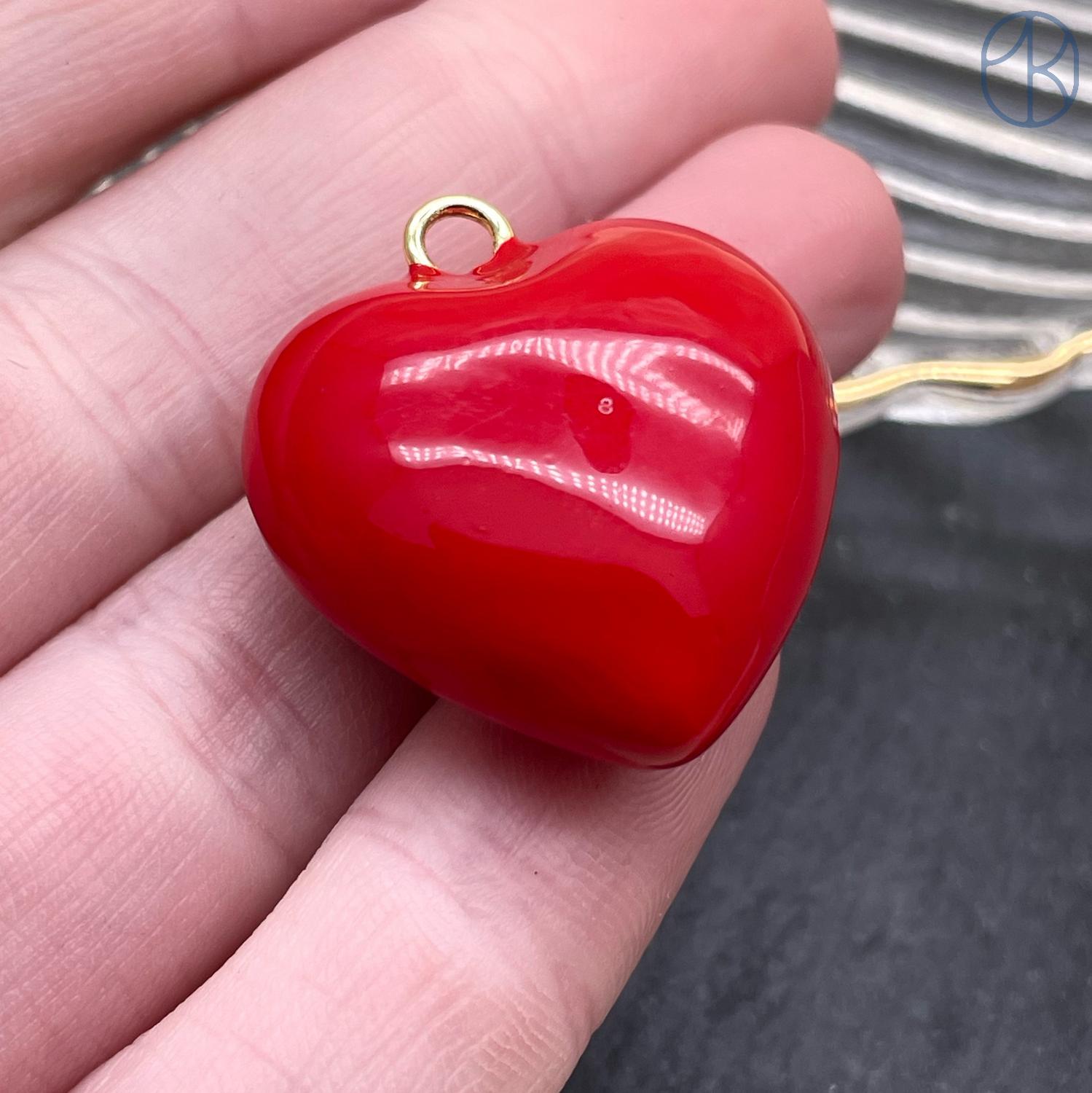 Подвеска сердце красная эмаль, цвет золото 25 мм