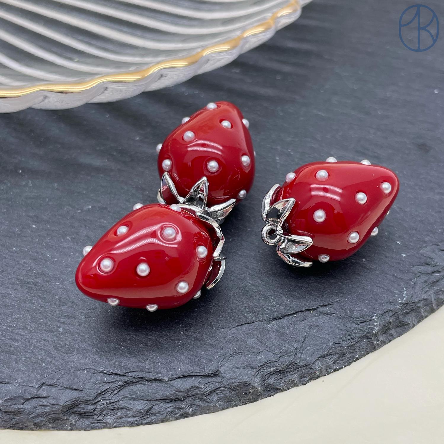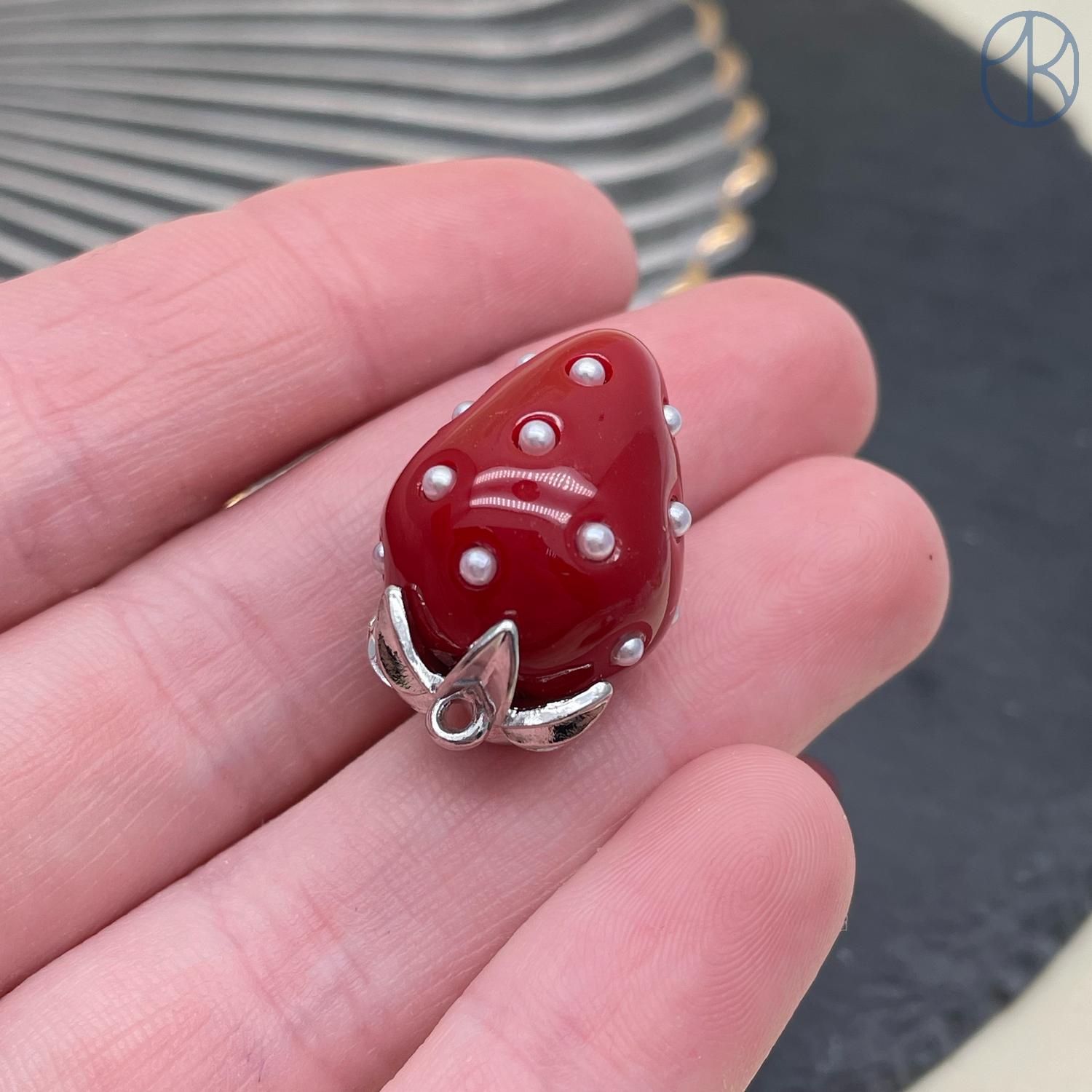 25*16 мм, цвет серебро, Подвеска клубника темно-красная, акрил