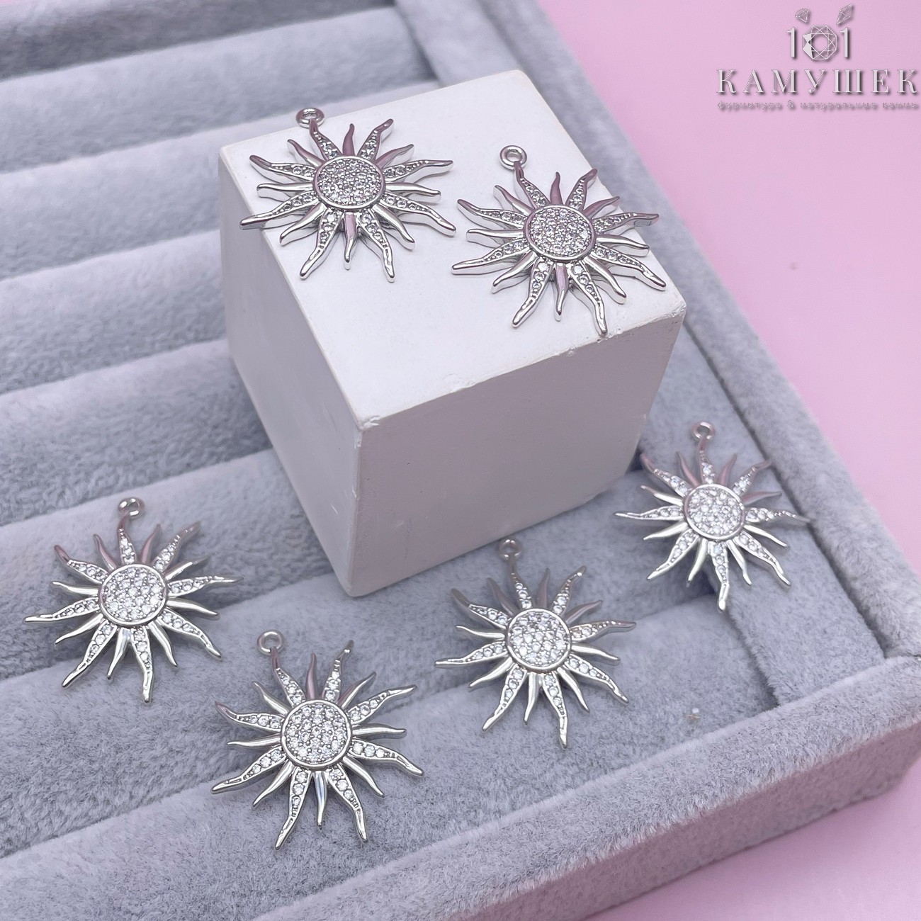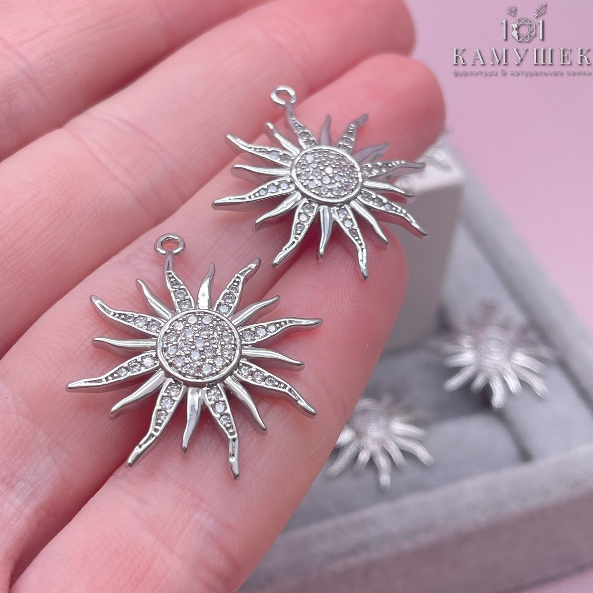 Подвеска солнце с белыми цирконами, цвет серебро 27х25 мм