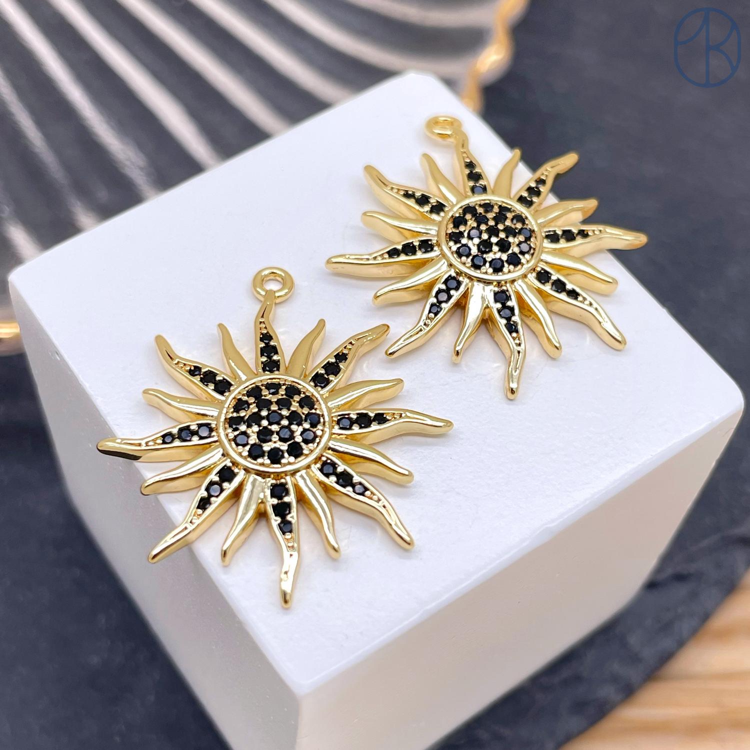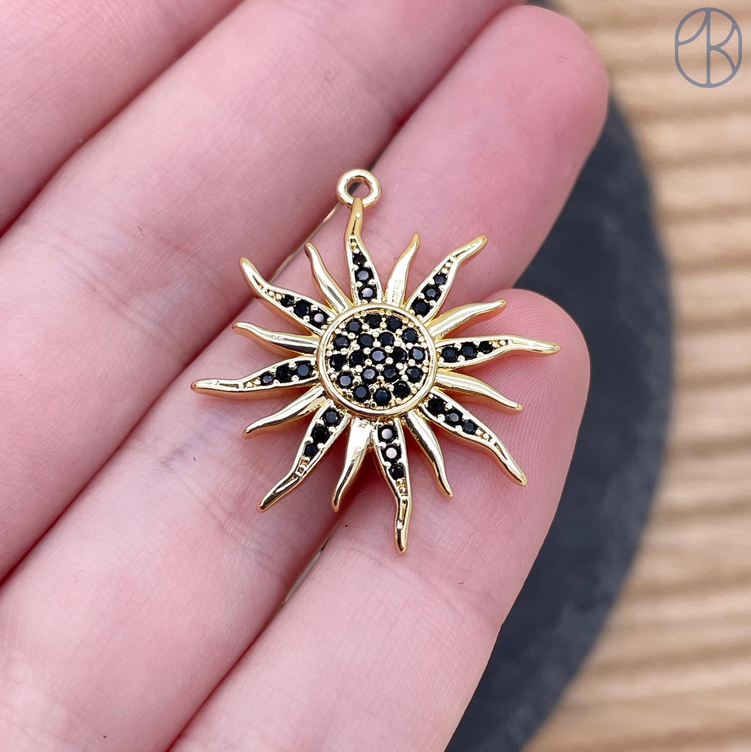 Подвеска солнце с черными цирконами, цвет золото 27х25 мм