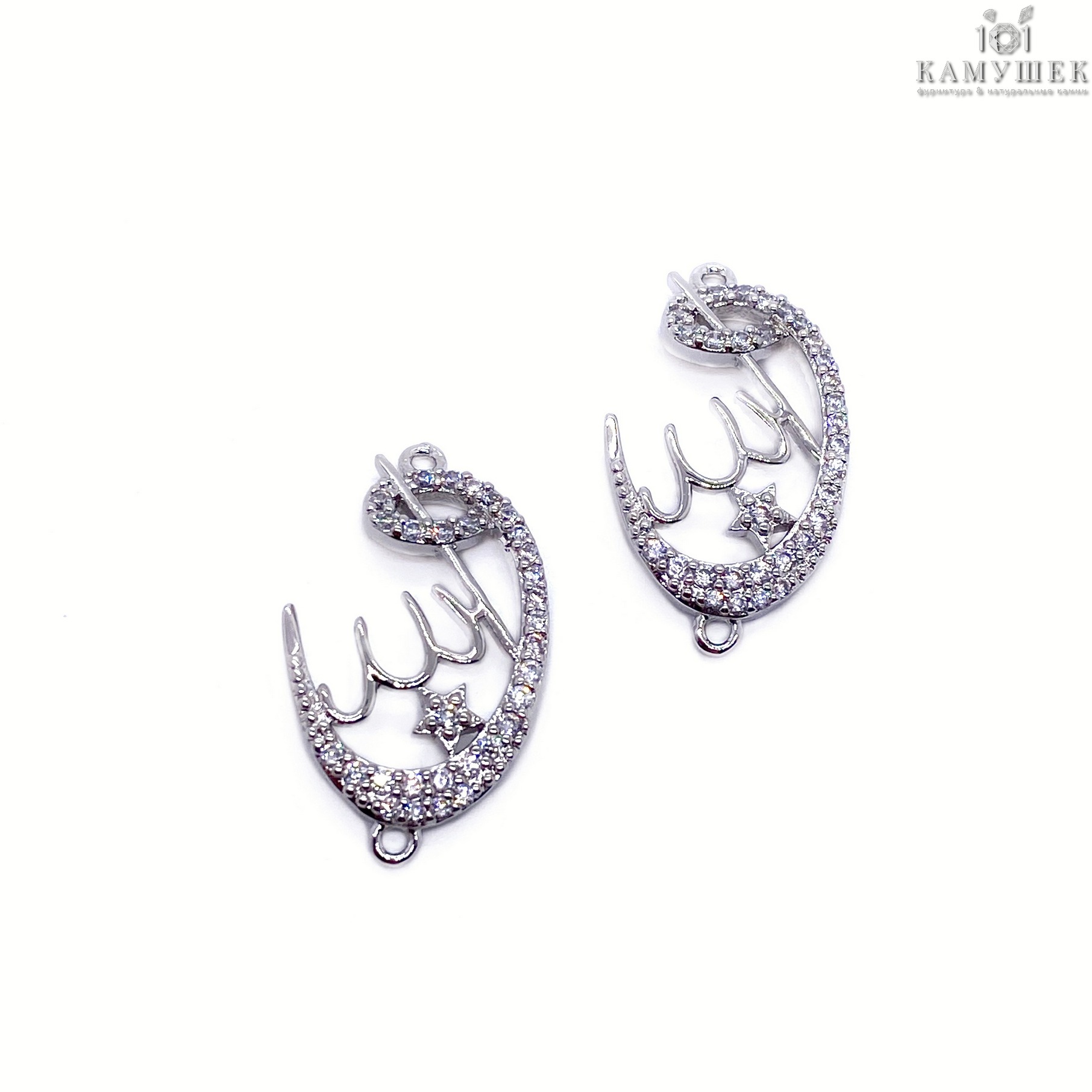 Коннектор мусульманский цирконы, цвет серебро 28х16 мм