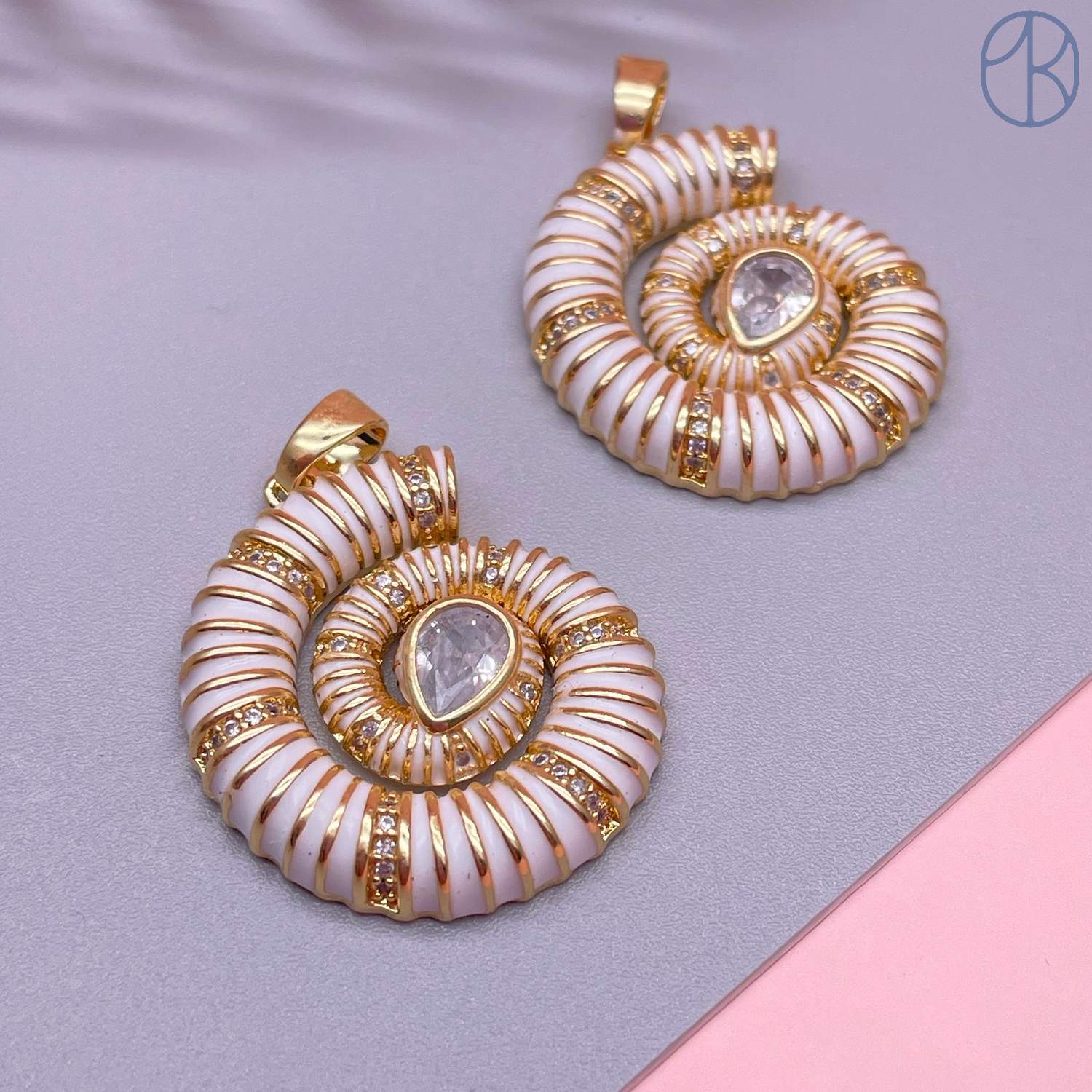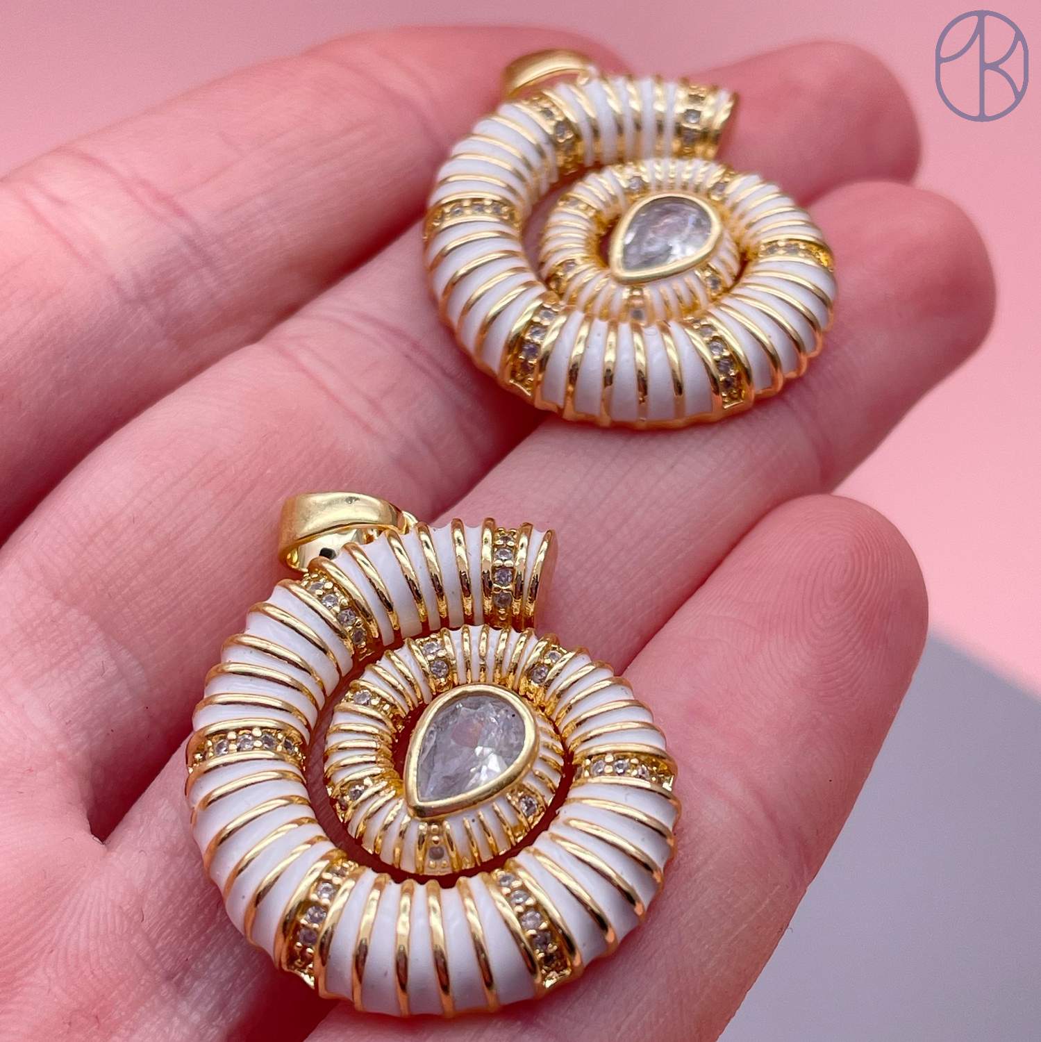 Подвеска ракушка улитка циркон белая эмаль, цвет золото 28х23 мм