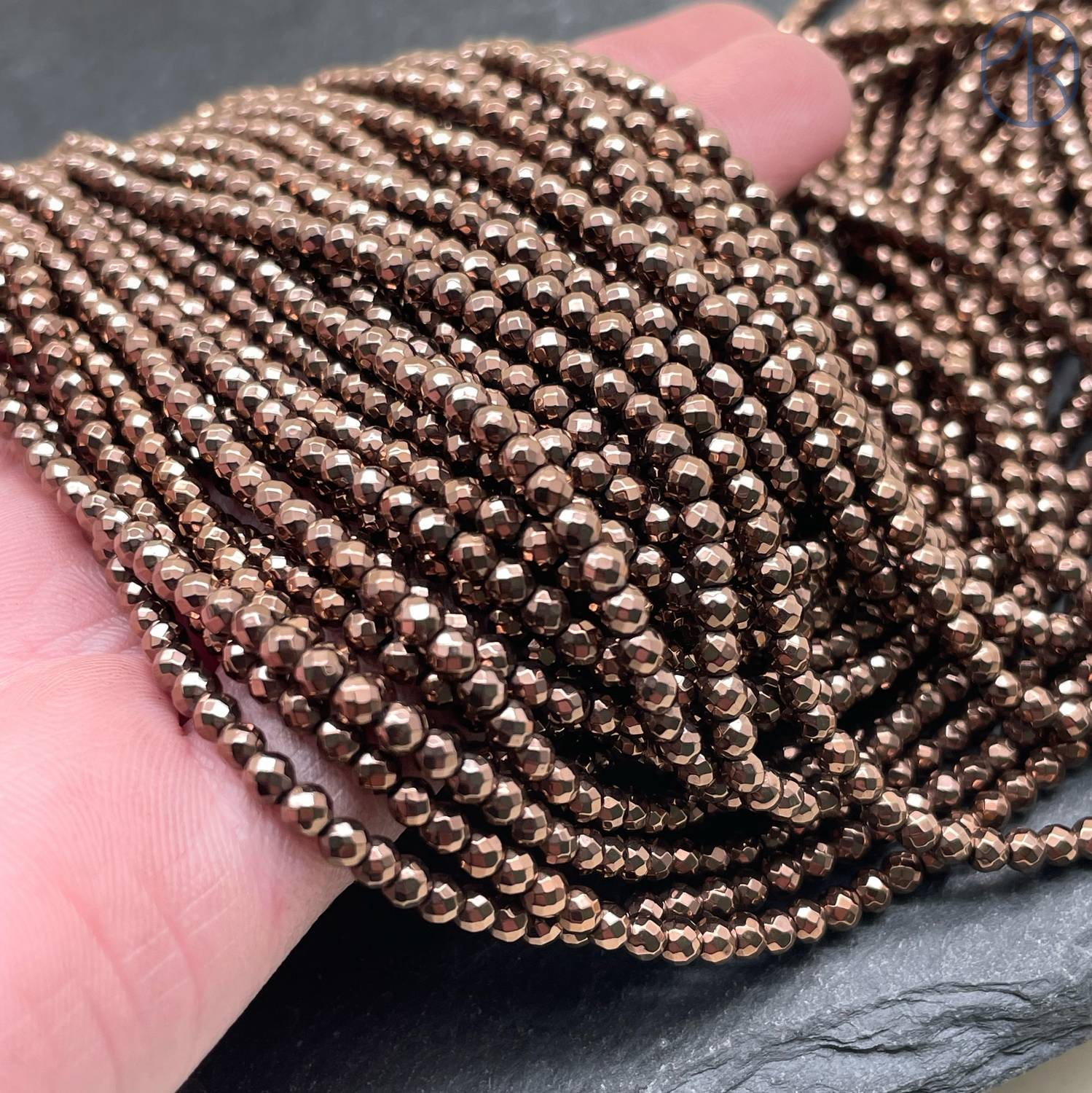 Гематин обладает гладкой, зеркальной поверхностью. Это свойство делает его очень привлекательным, но в то же время делает его более уязвимым к появлению мелких царапин. Во время транспортировки или при обработке бусин небольшие царапины могут появиться на их поверхности. Эти царапины обычно минимальны и едва заметны, но они могут быть видны при определенном освещении или под увеличением.