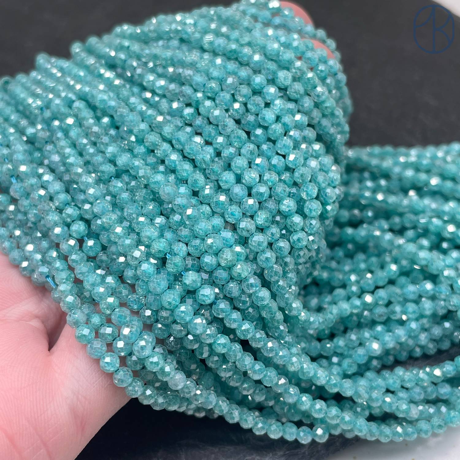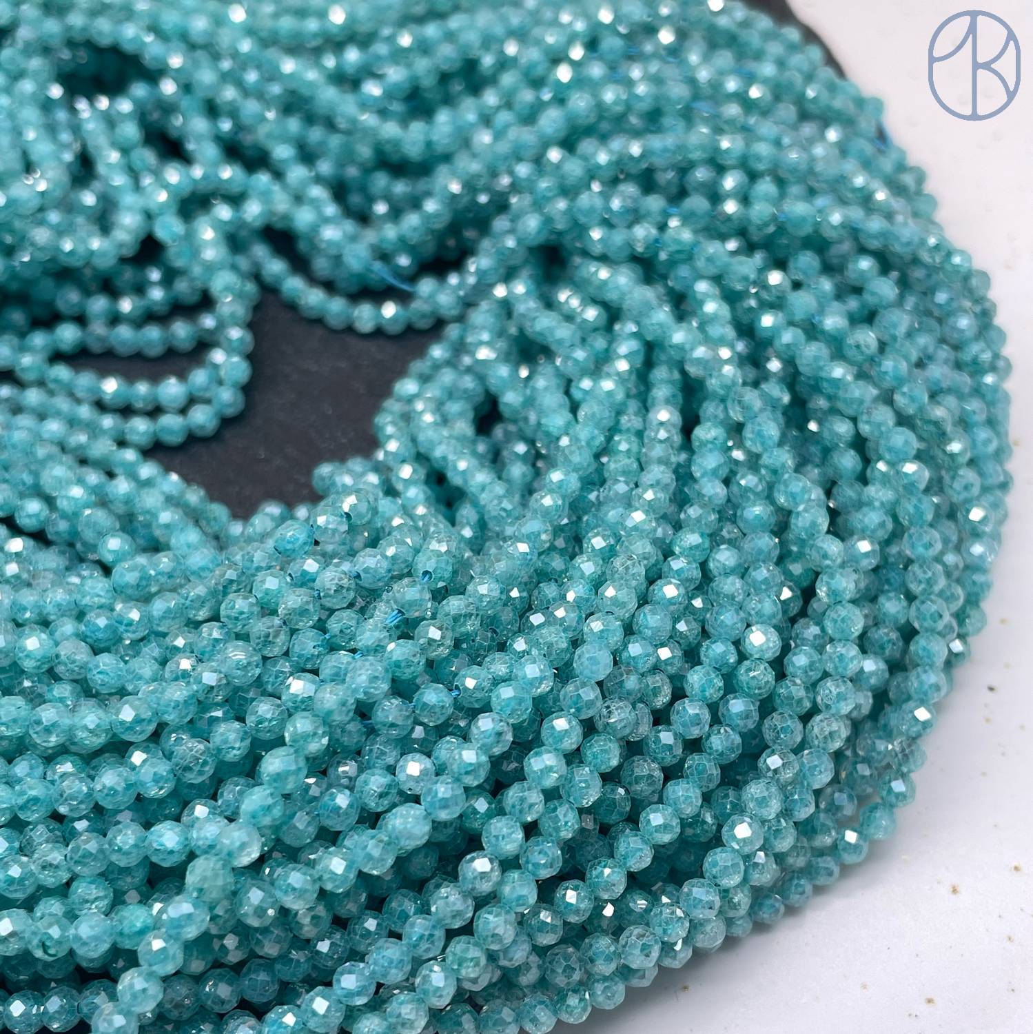 3 мм, Циркон огранка бирюзовый №1 с эффектом снежного кварца (кубический цирконий, фианит)