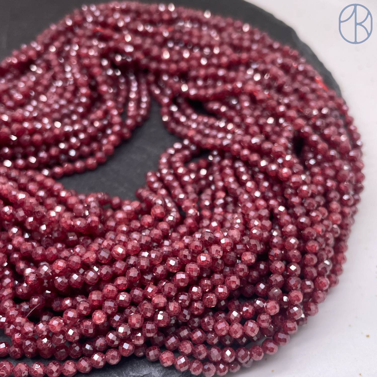 3 мм, Циркон огранка бордовый с эффектом снежного кварца (кубический цирконий, фианит)