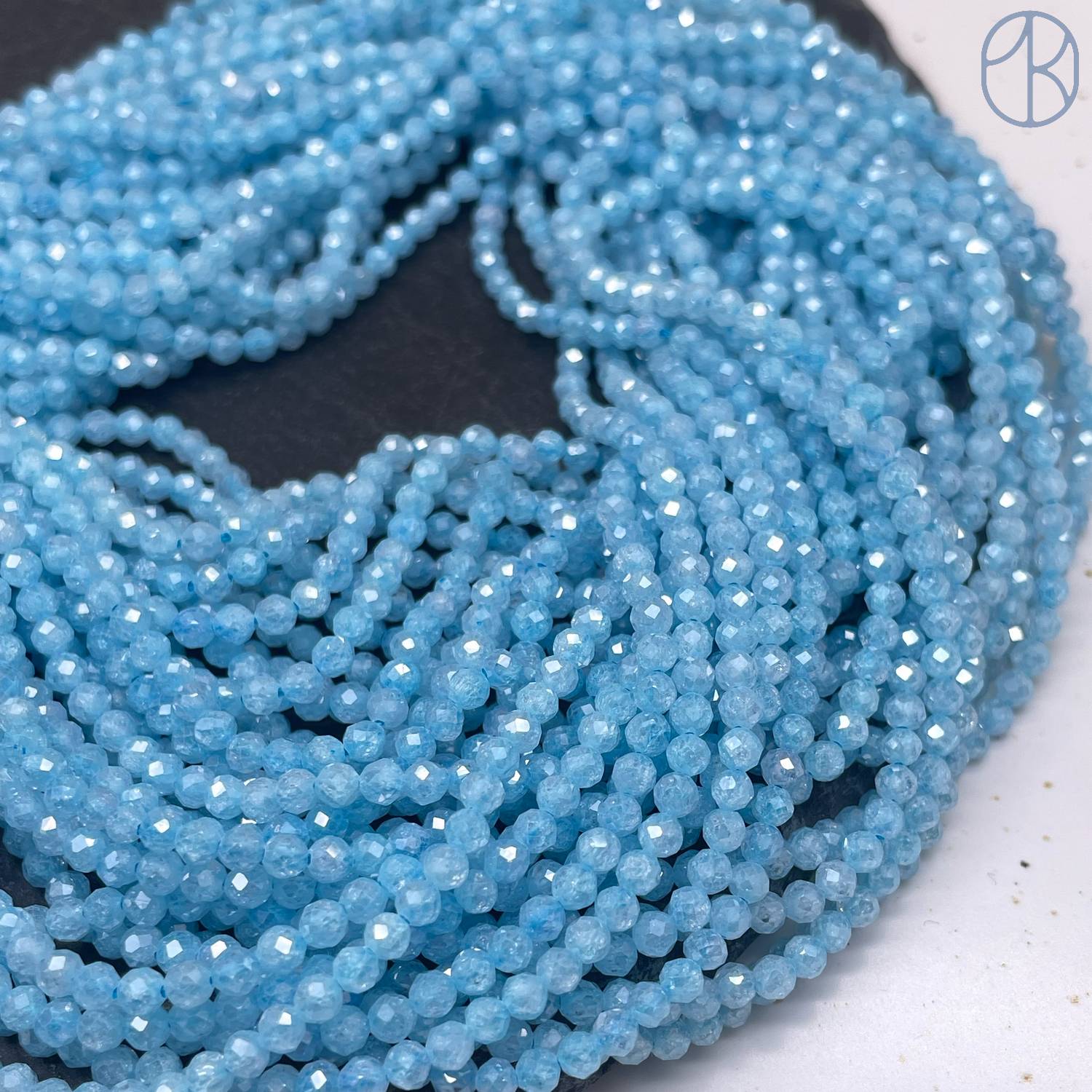 3 мм, Циркон огранка светло-голубой с эффектом снежного кварца (кубический цирконий, фианит)
