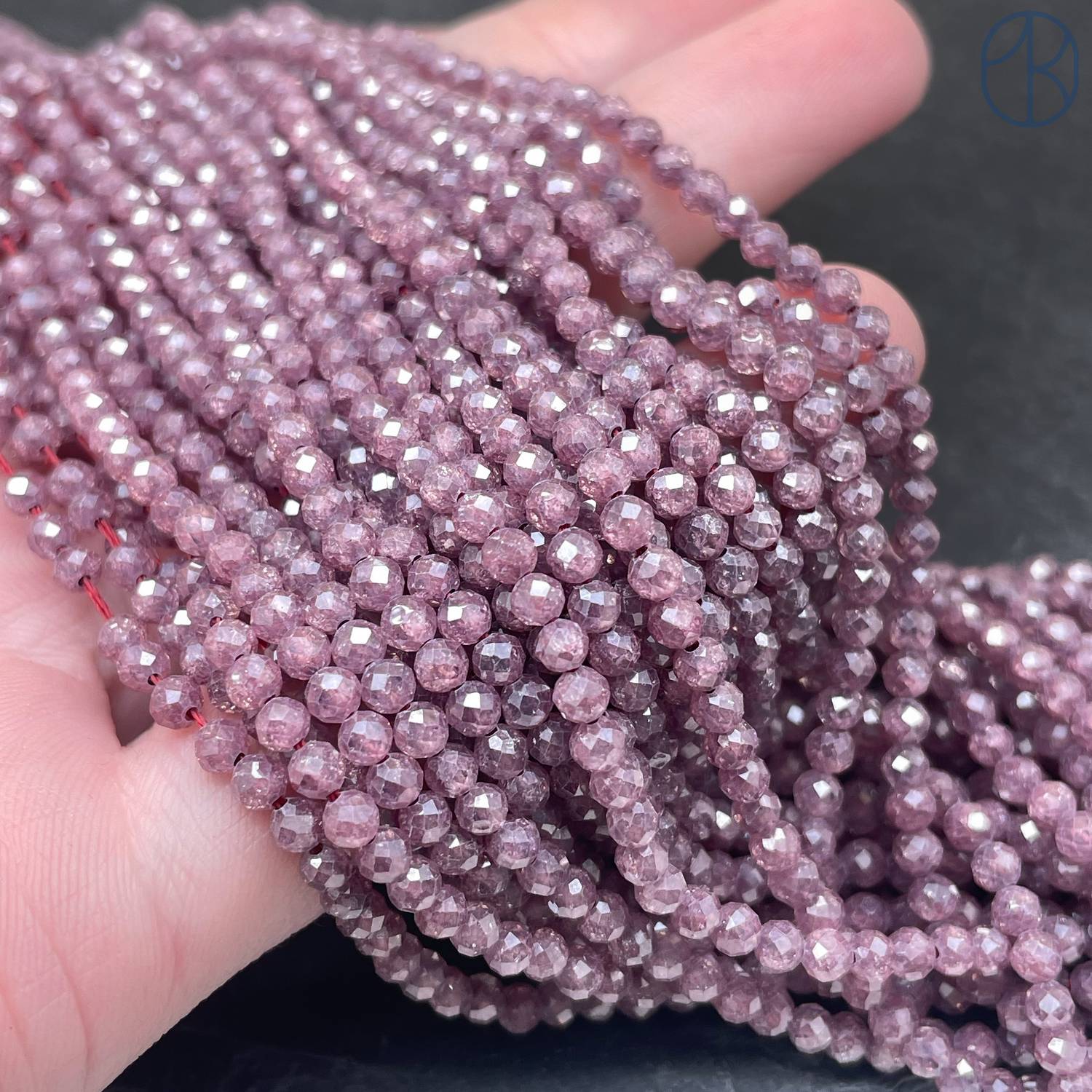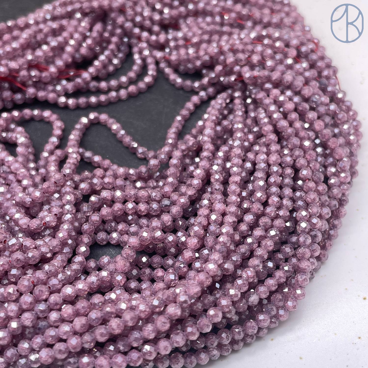 3 мм, Циркон огранка темно-сиреневый с эффектом снежного кварца (кубический цирконий, фианит)