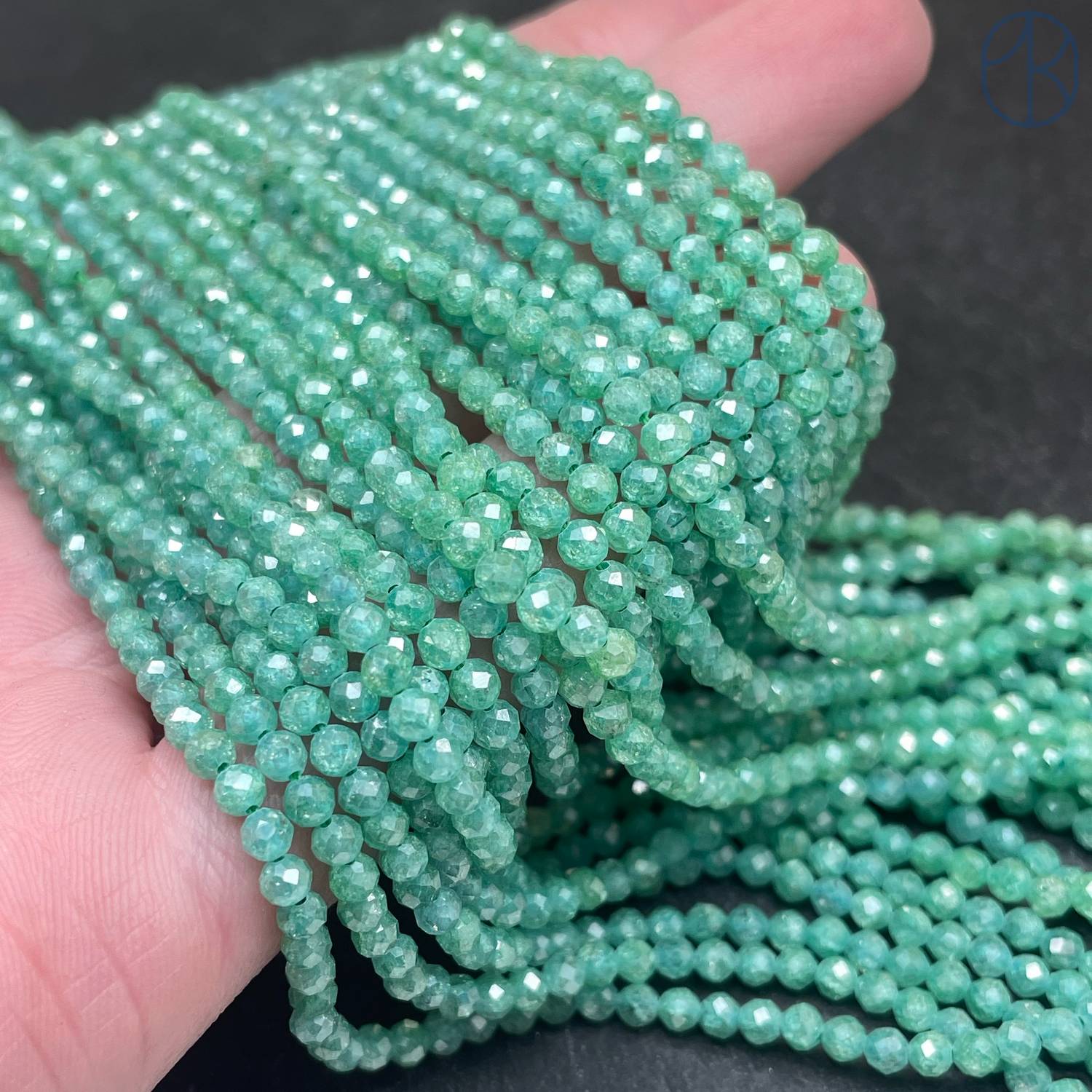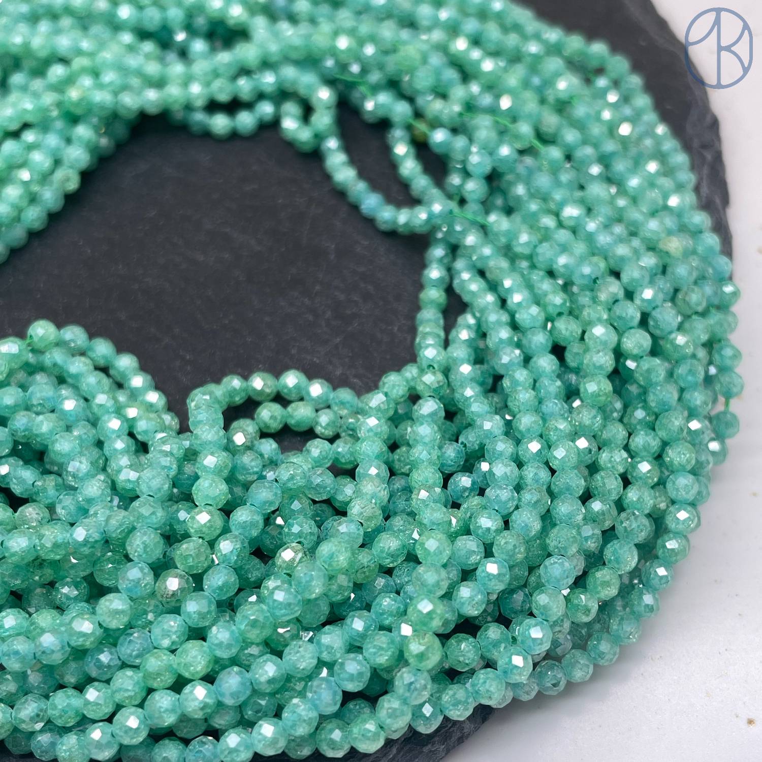 3 мм, Циркон огранка зеленый №2 с эффектом снежного кварца (кубический цирконий, фианит)