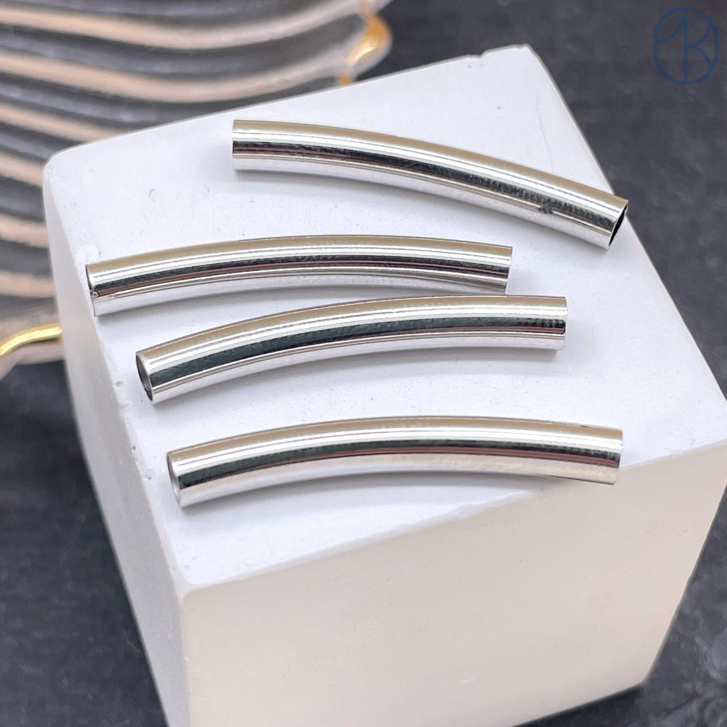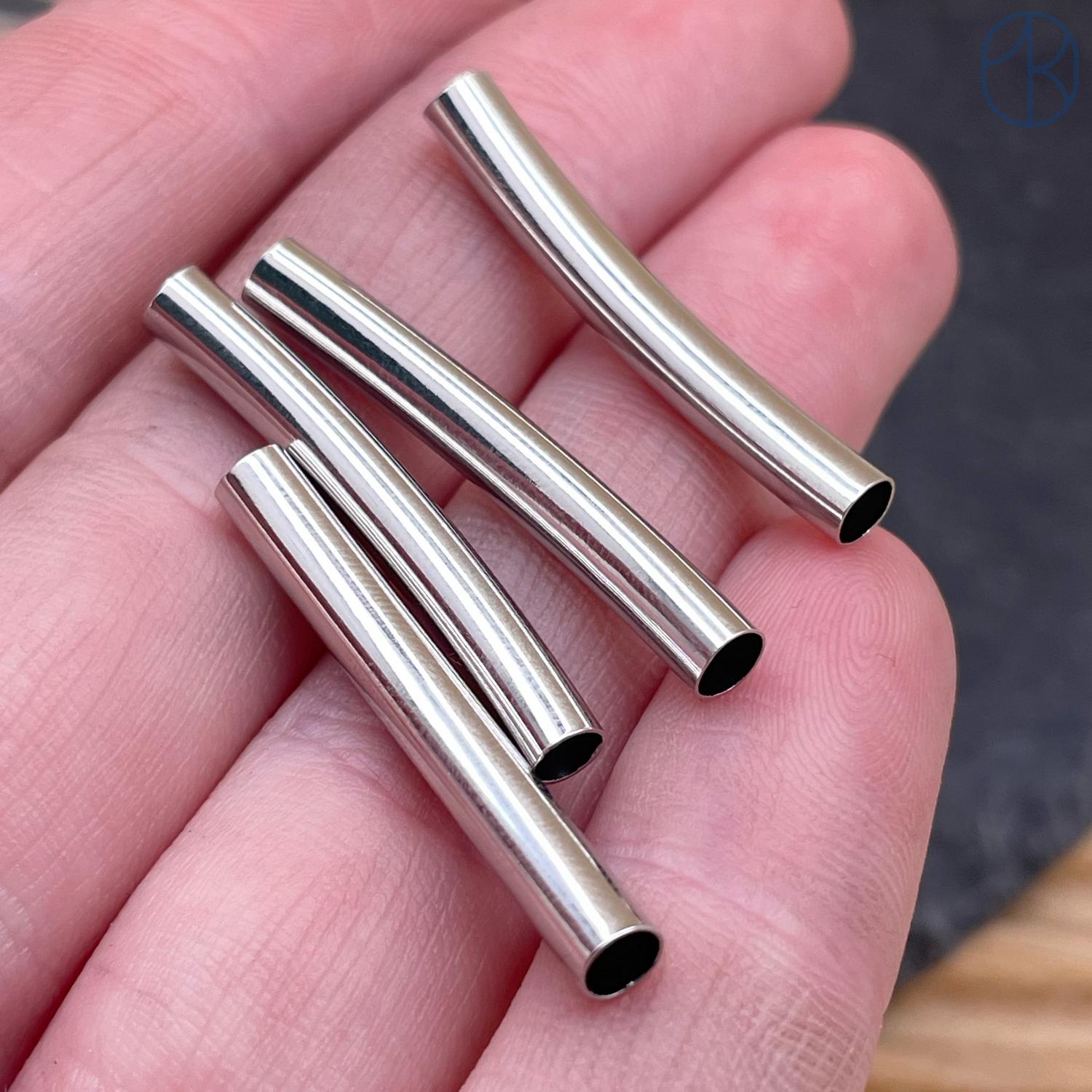 Бусина трубочка гладкая, цвет серебро 30х5 мм