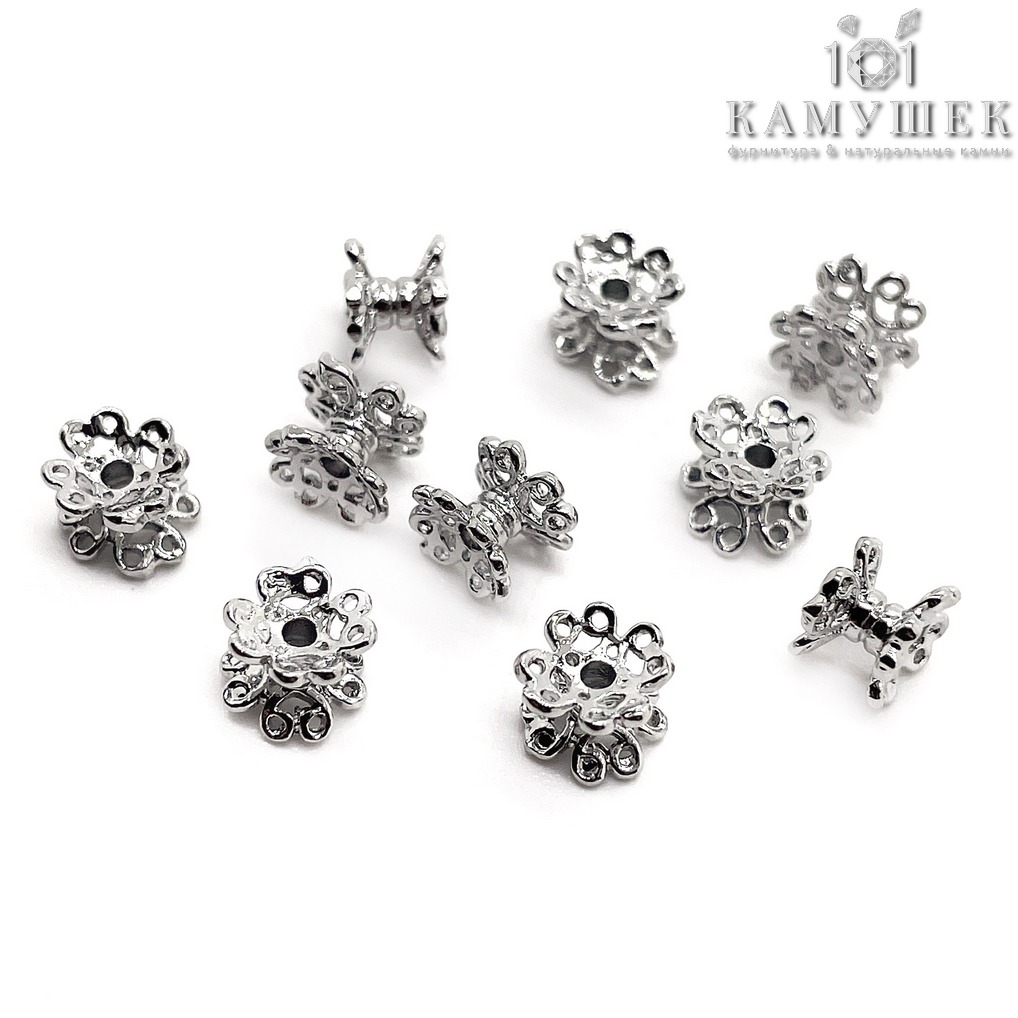 Бусина -разделитель сталь цирконы, цвет серебро 10*10,6мм