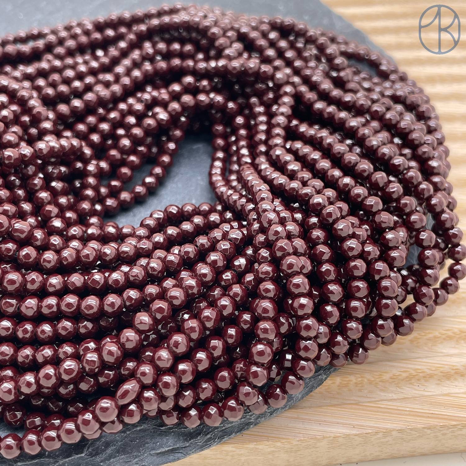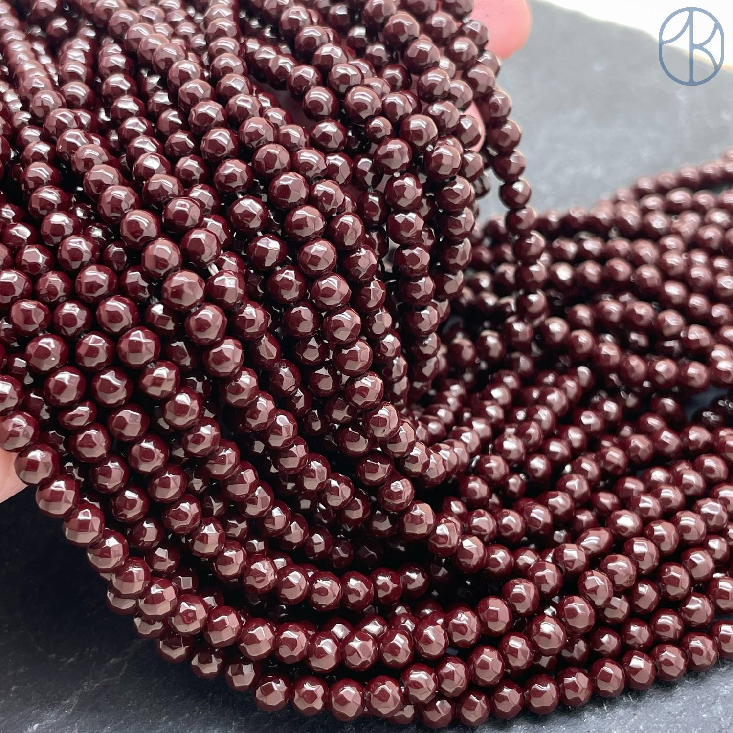 4 мм Гематин имитация огранка, цвет темно-бордовый