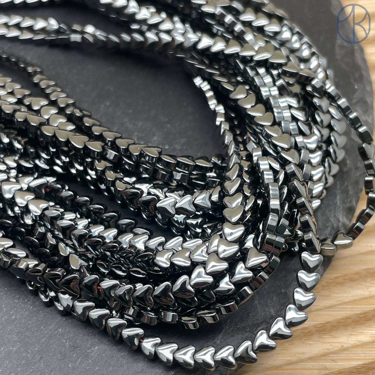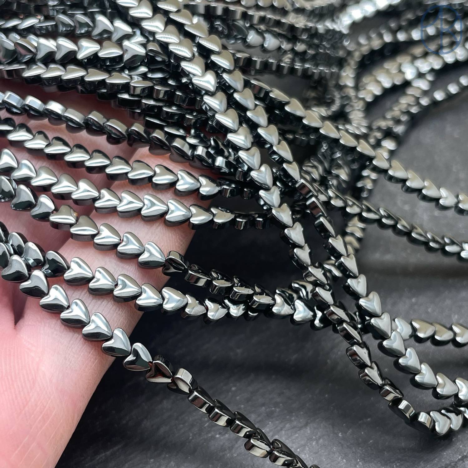 Гематин обладает гладкой, зеркальной поверхностью. Это свойство делает его очень привлекательным, но в то же время делает его более уязвимым к появлению мелких царапин. Во время транспортировки или при обработке бусин небольшие царапины могут появиться на их поверхности. Эти царапины обычно минимальны и едва заметны, но они могут быть видны при определенном освещении или под увеличением.