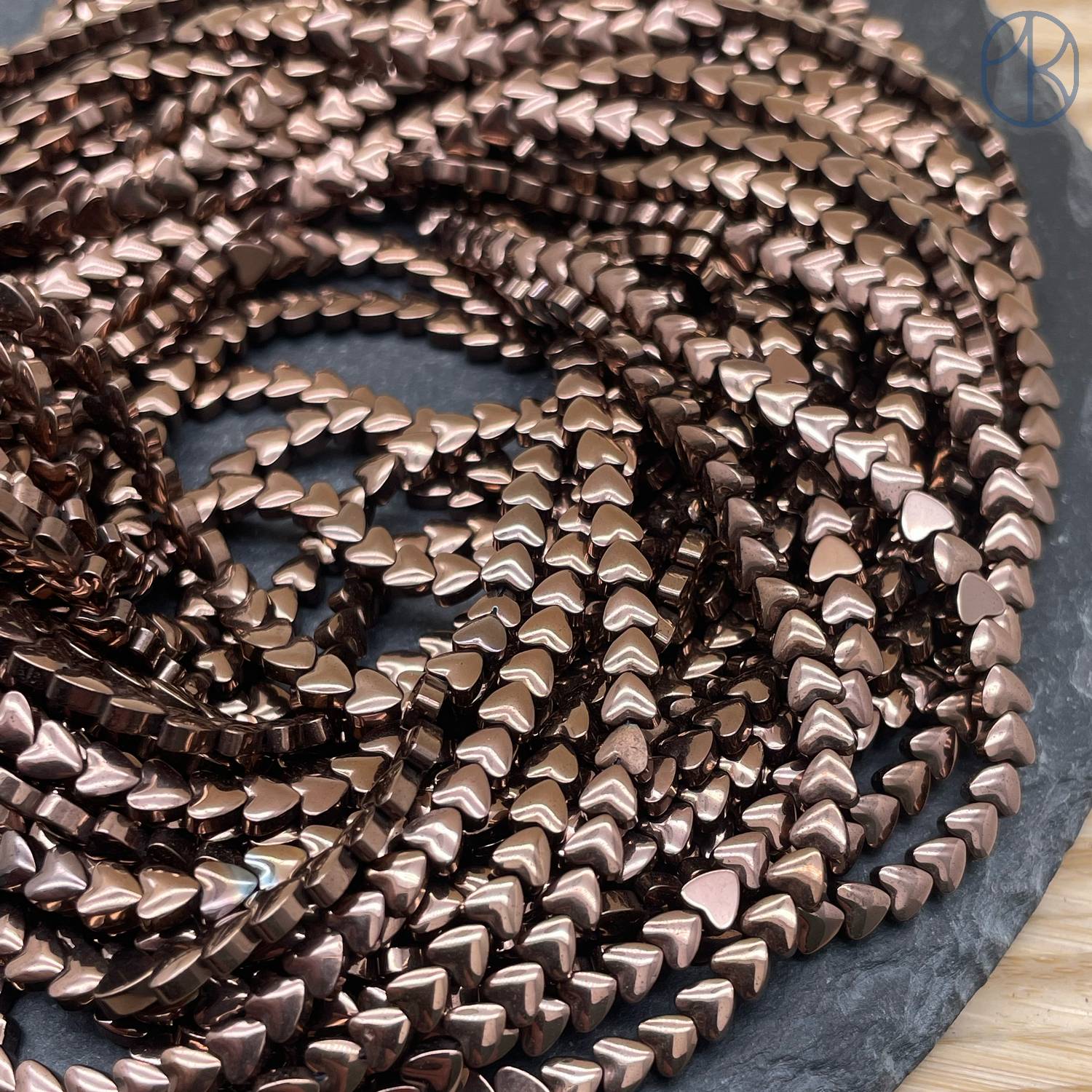 Гематин обладает гладкой, зеркальной поверхностью. Это свойство делает его очень привлекательным, но в то же время делает его более уязвимым к появлению мелких царапин. Во время транспортировки или при обработке бусин небольшие царапины могут появиться на их поверхности. Эти царапины обычно минимальны и едва заметны, но они могут быть видны при определенном освещении или под увеличением.