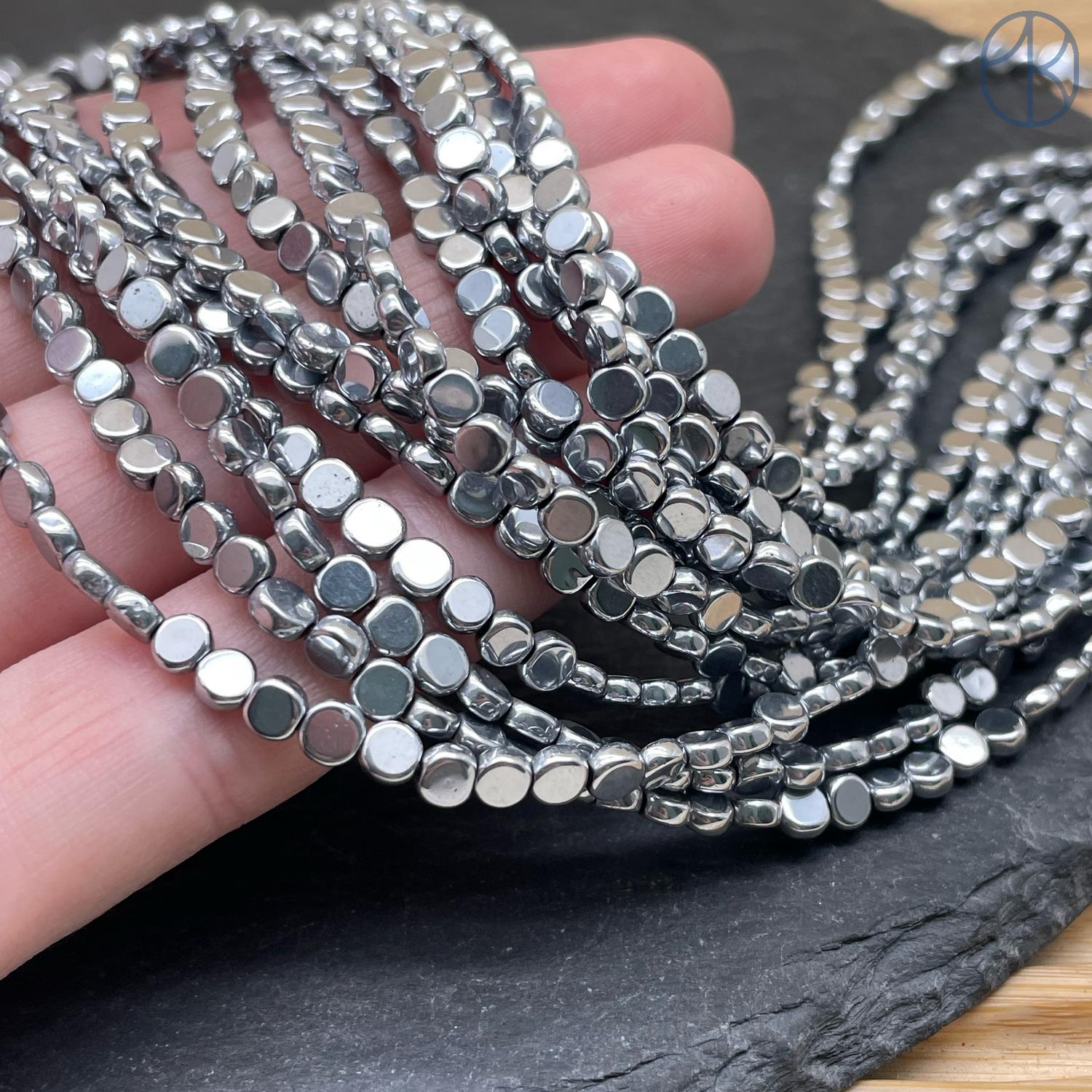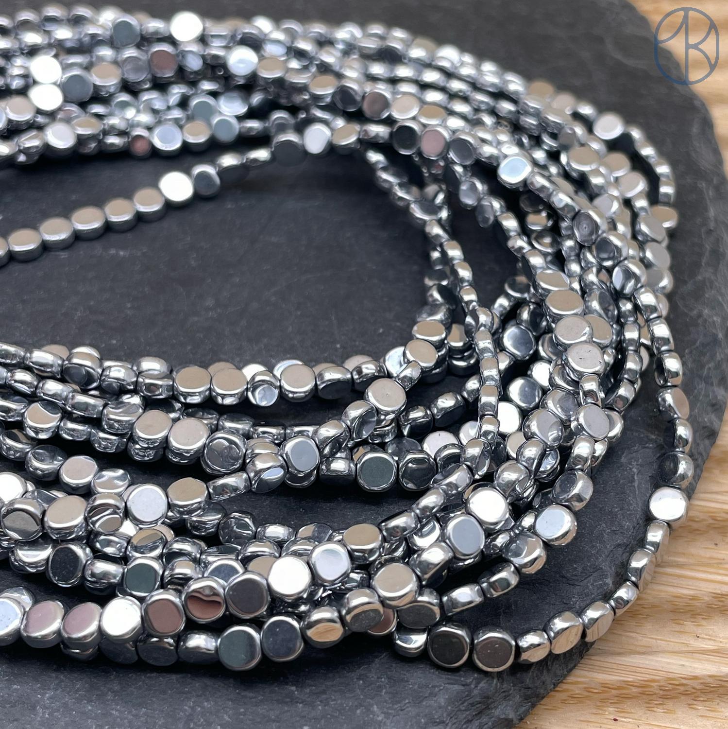 4 мм Гематин круг плоский имитация, цвет темное серебро
