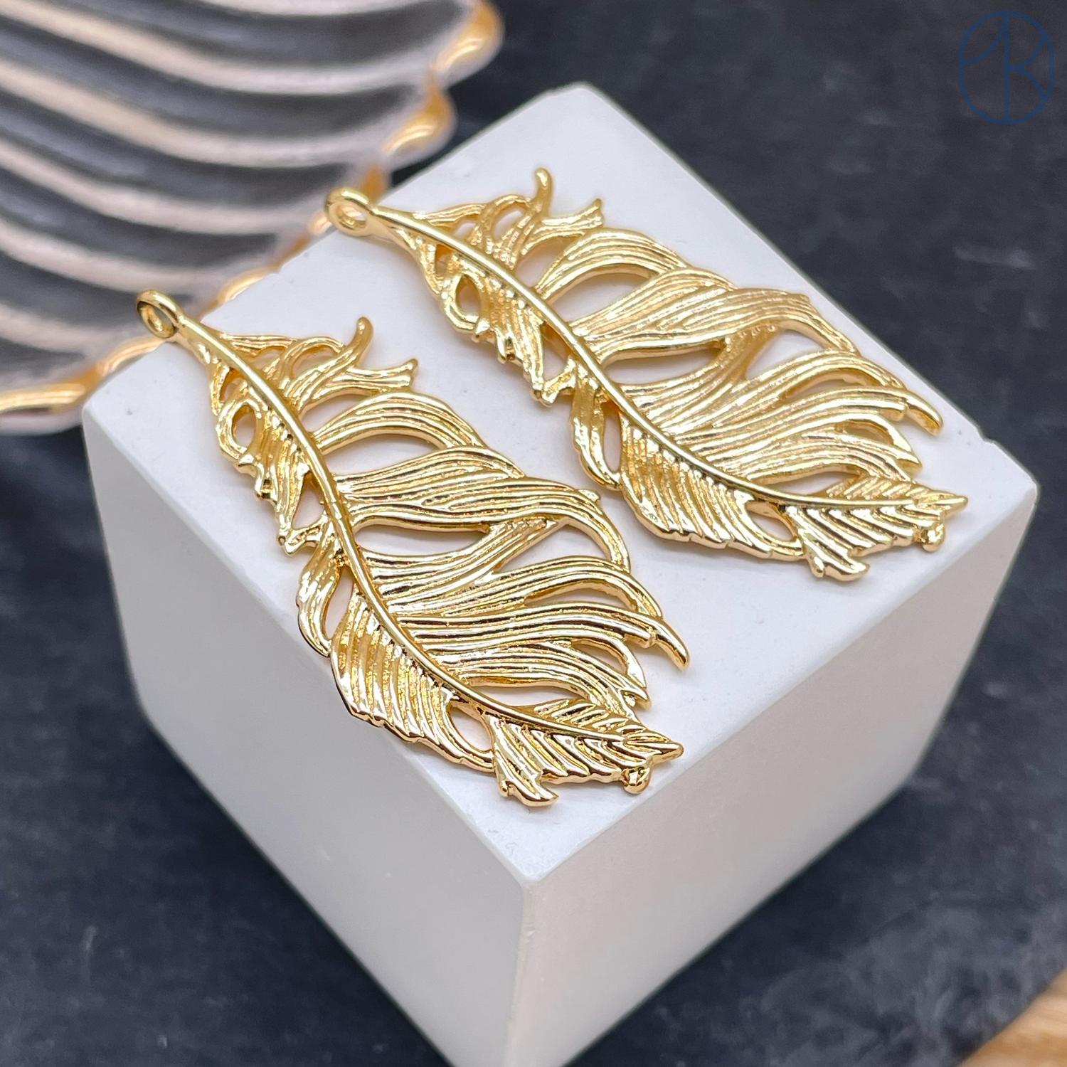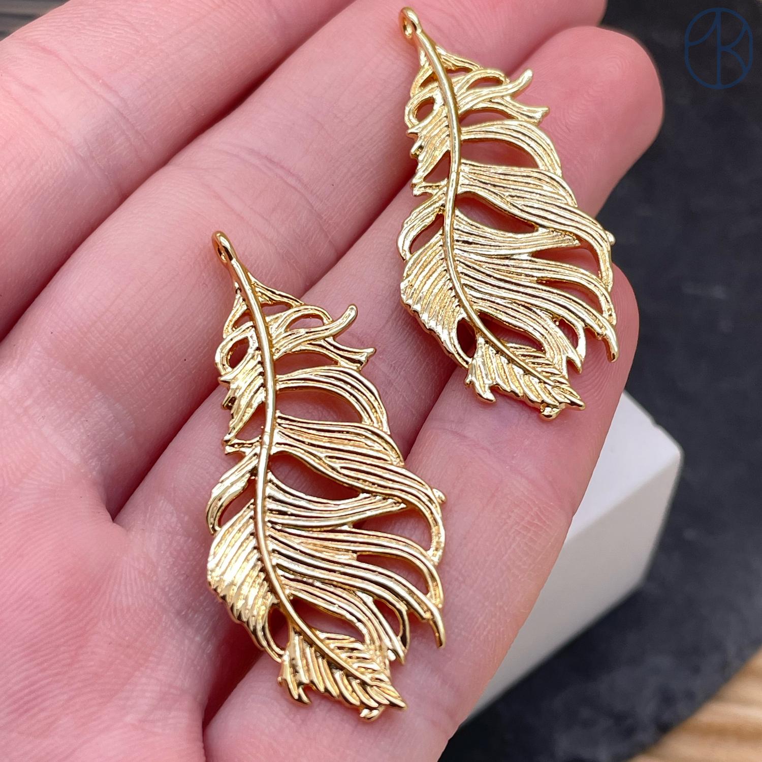 Подвеска лист, цвет золото 40 мм