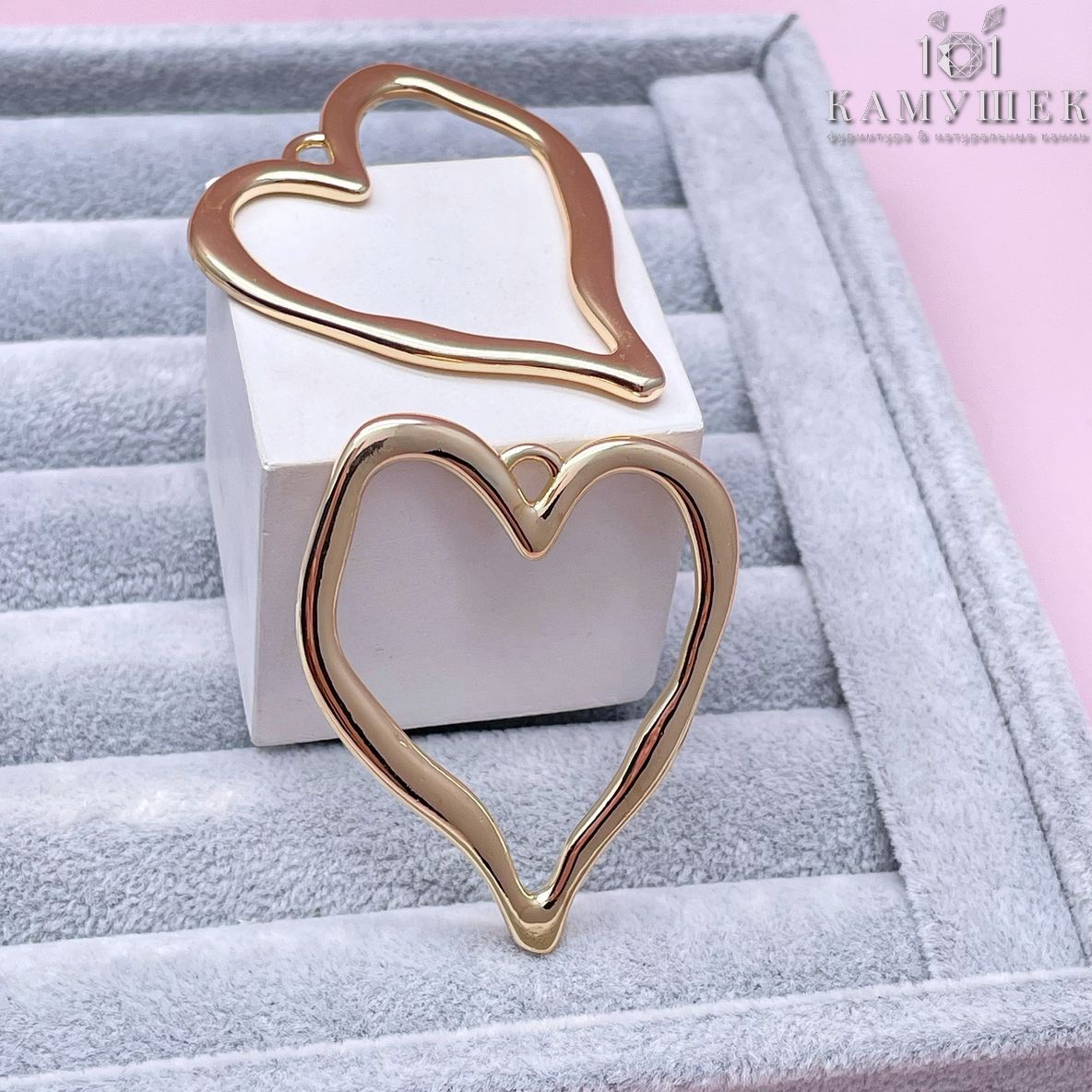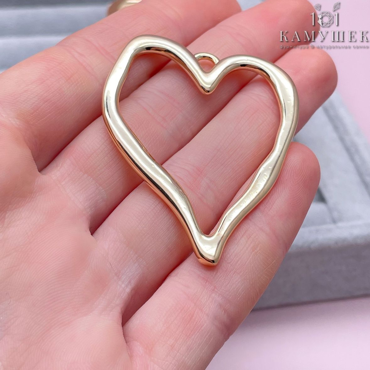 Подвеска сердце фриформ контур, цвет золото 40х51 мм