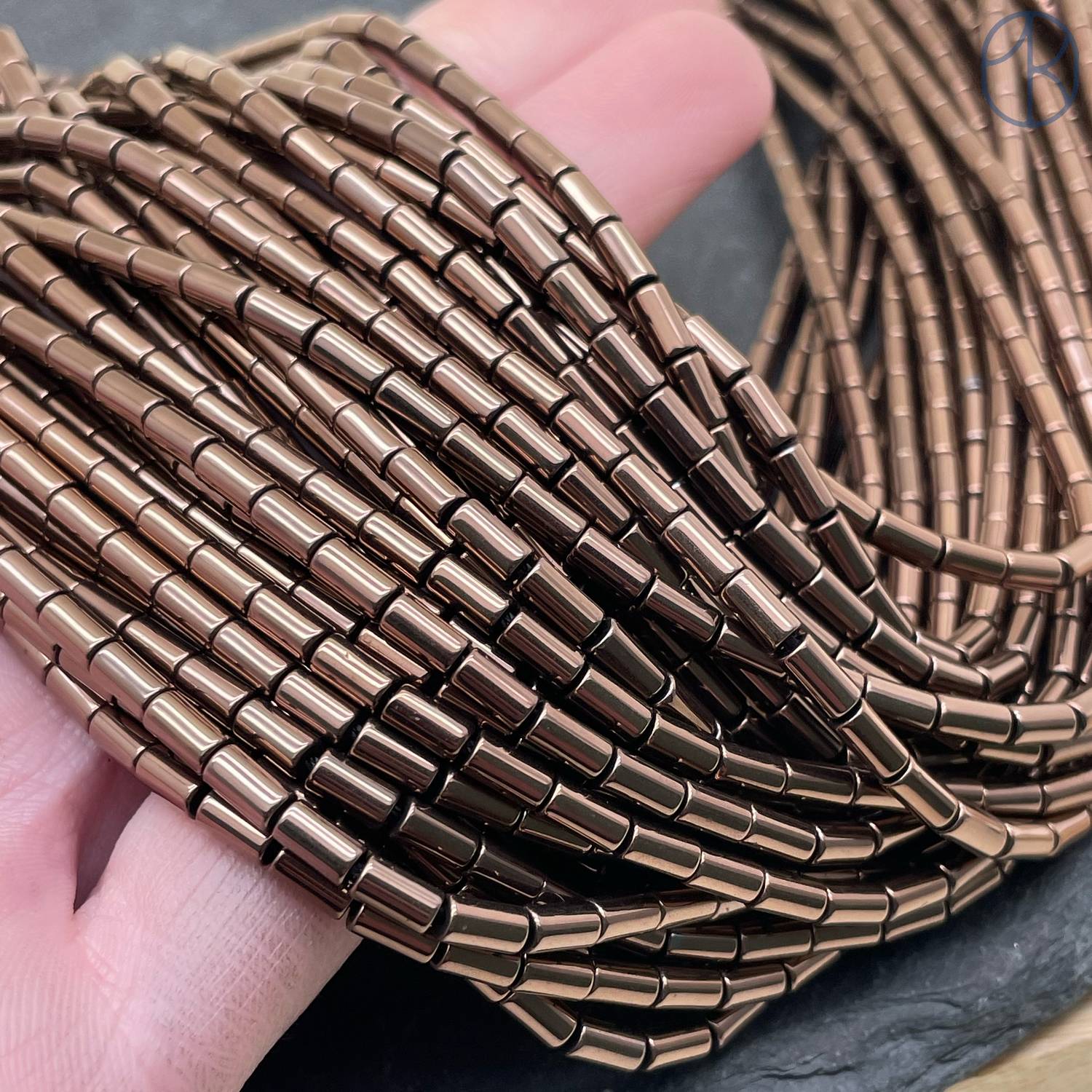 Гематин обладает гладкой, зеркальной поверхностью. Это свойство делает его очень привлекательным, но в то же время делает его более уязвимым к появлению мелких царапин. Во время транспортировки или при обработке бусин небольшие царапины могут появиться на их поверхности. Эти царапины обычно минимальны и едва заметны, но они могут быть видны при определенном освещении или под увеличением.