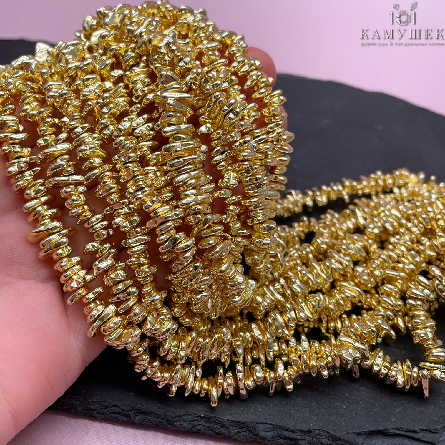 6, 5-9 мм Гематин сколы шлифованные, светлое золото, имитация