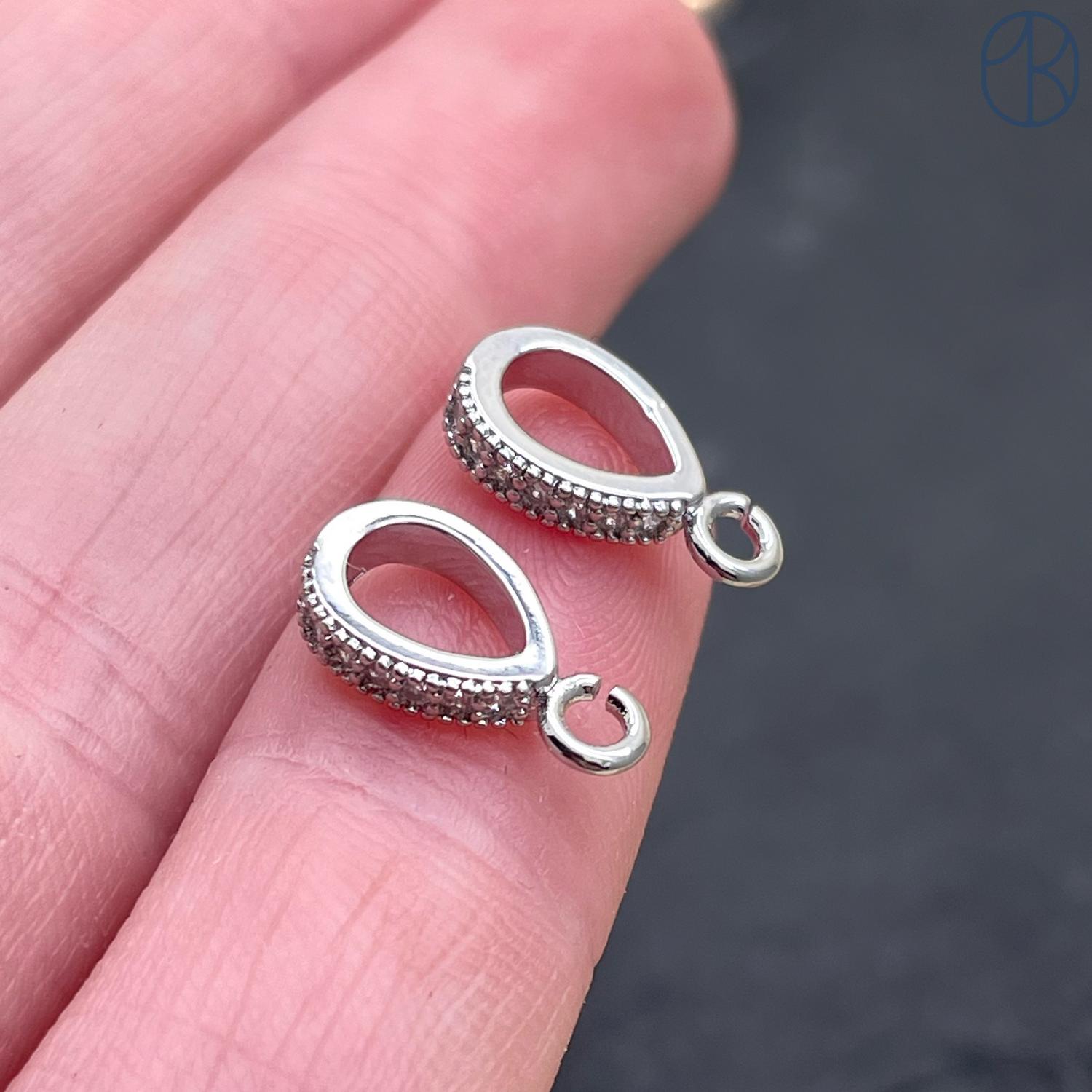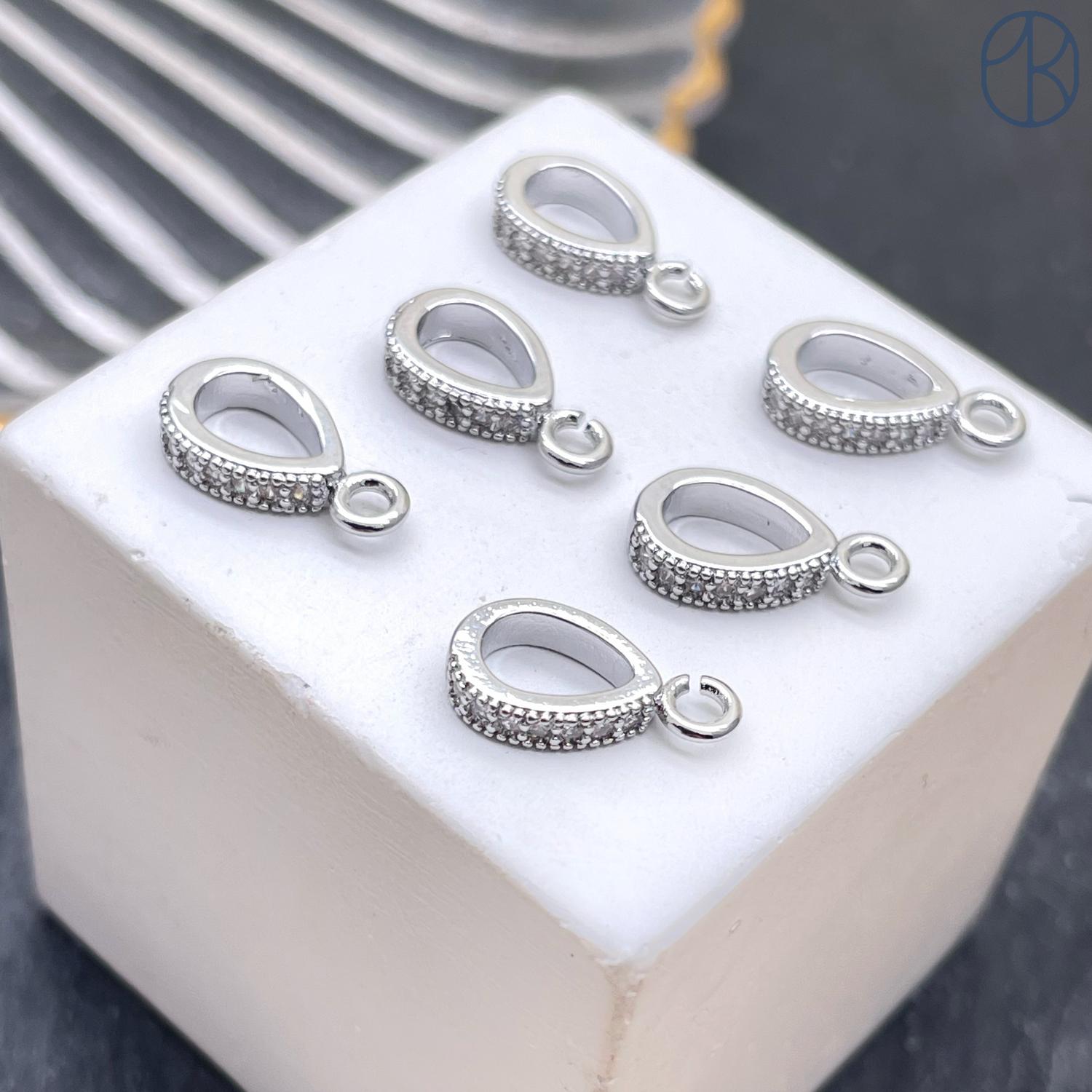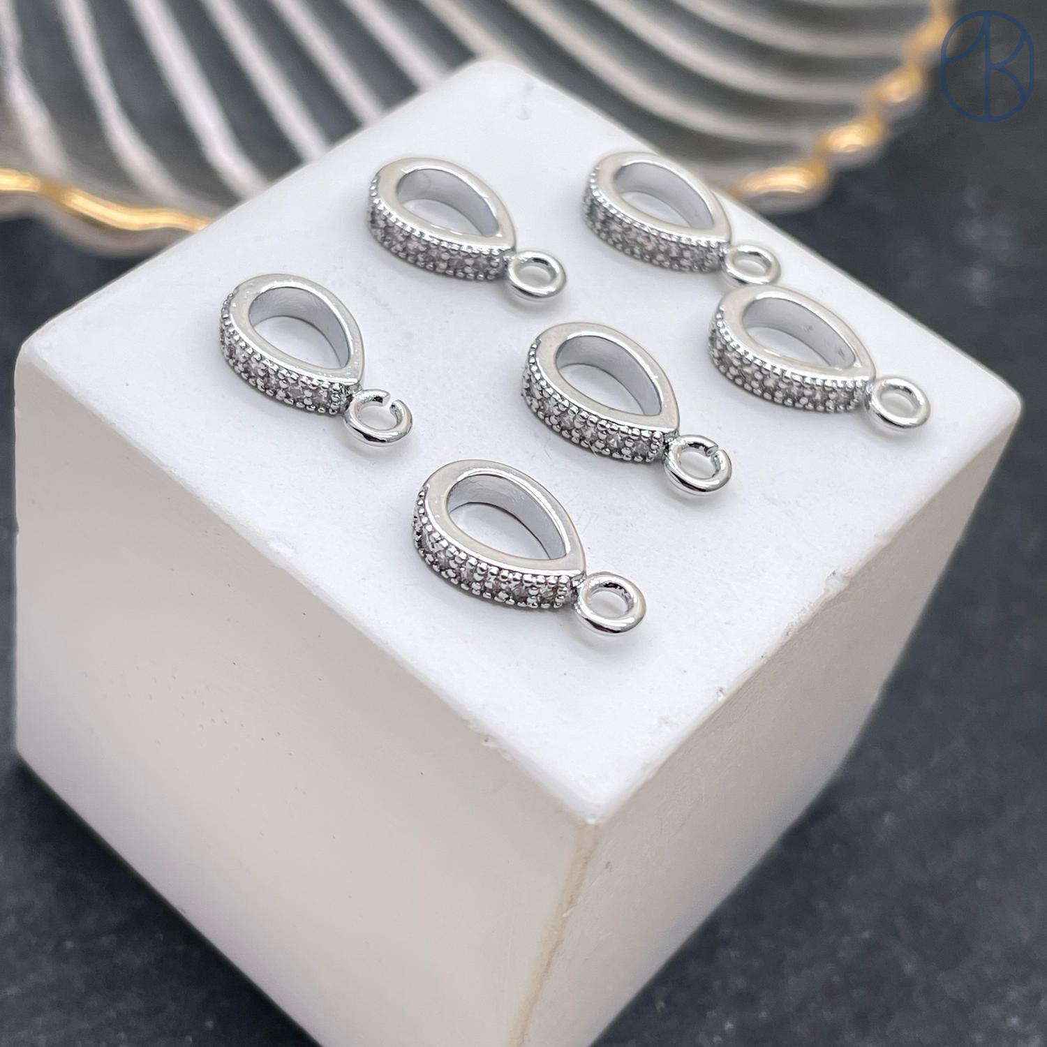 Бейл капля цирконы разъемное кольцо, цвет серебро 12х6 мм
