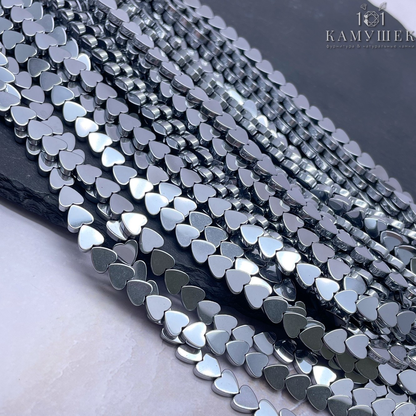 6 мм Гематин, цвет темное серебро, сердце плоское имитация