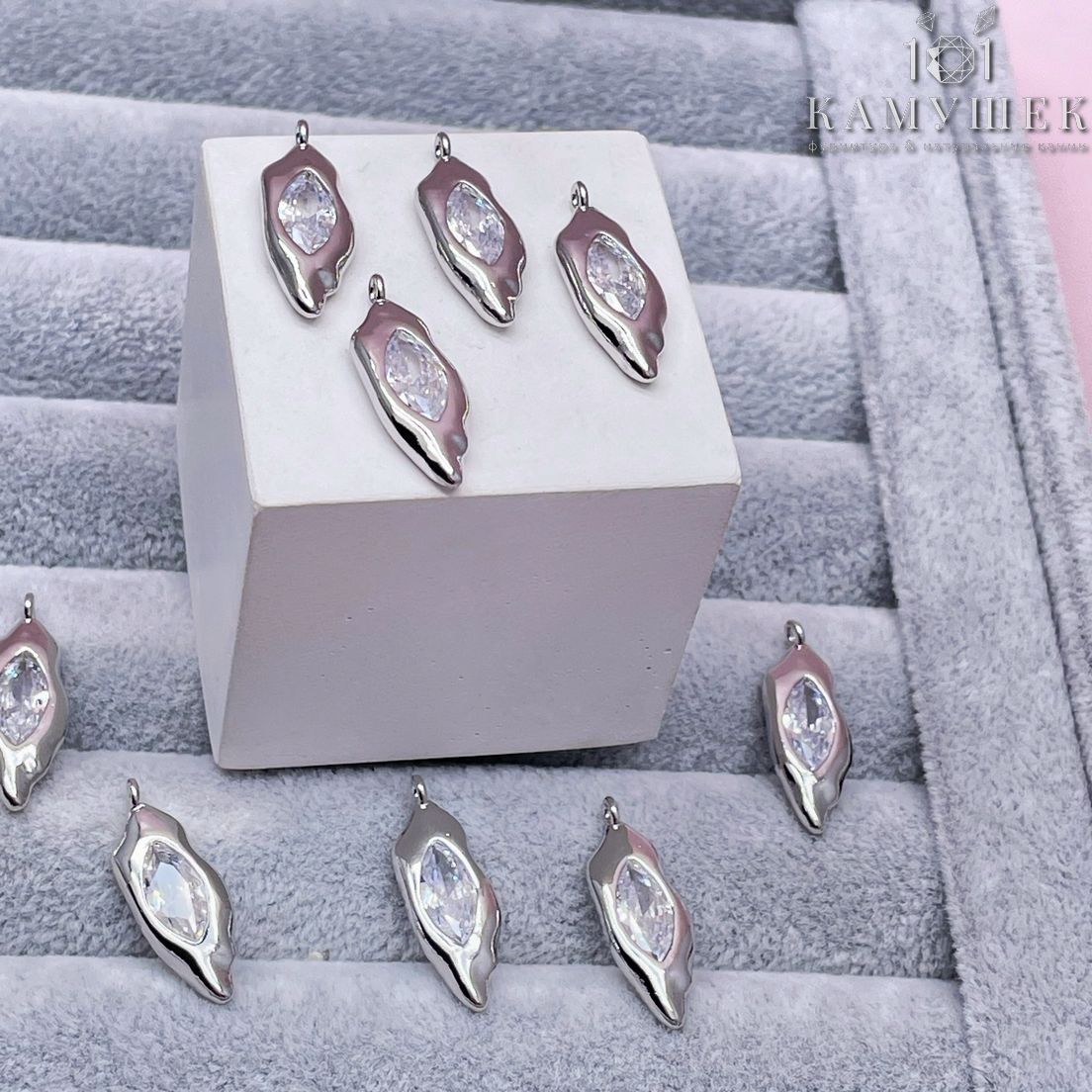 Подвеска фриформ циркон, цвет серебро 22х8 мм