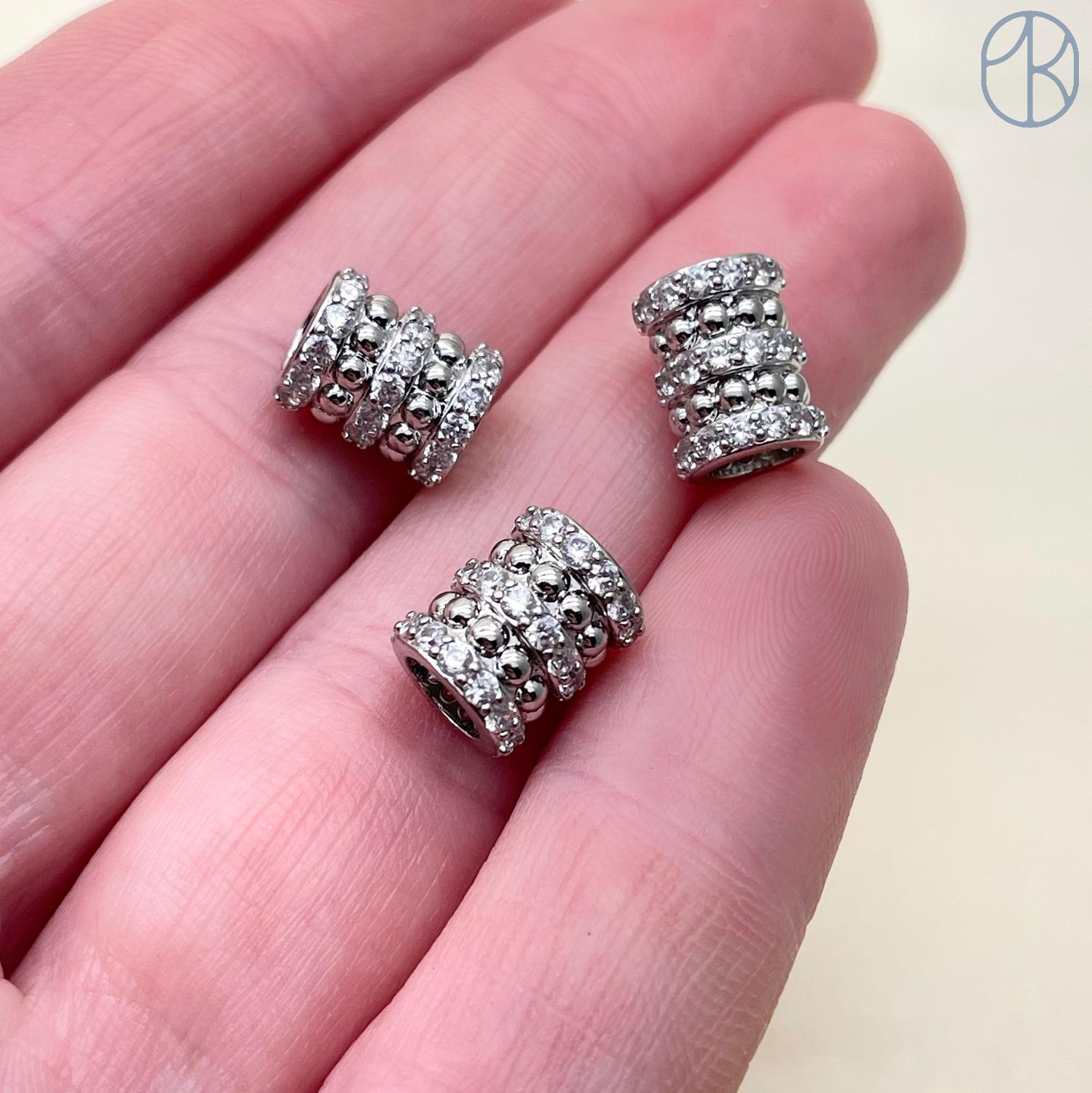 8*9 мм, Цвет серебро, Бусина призма цирконы