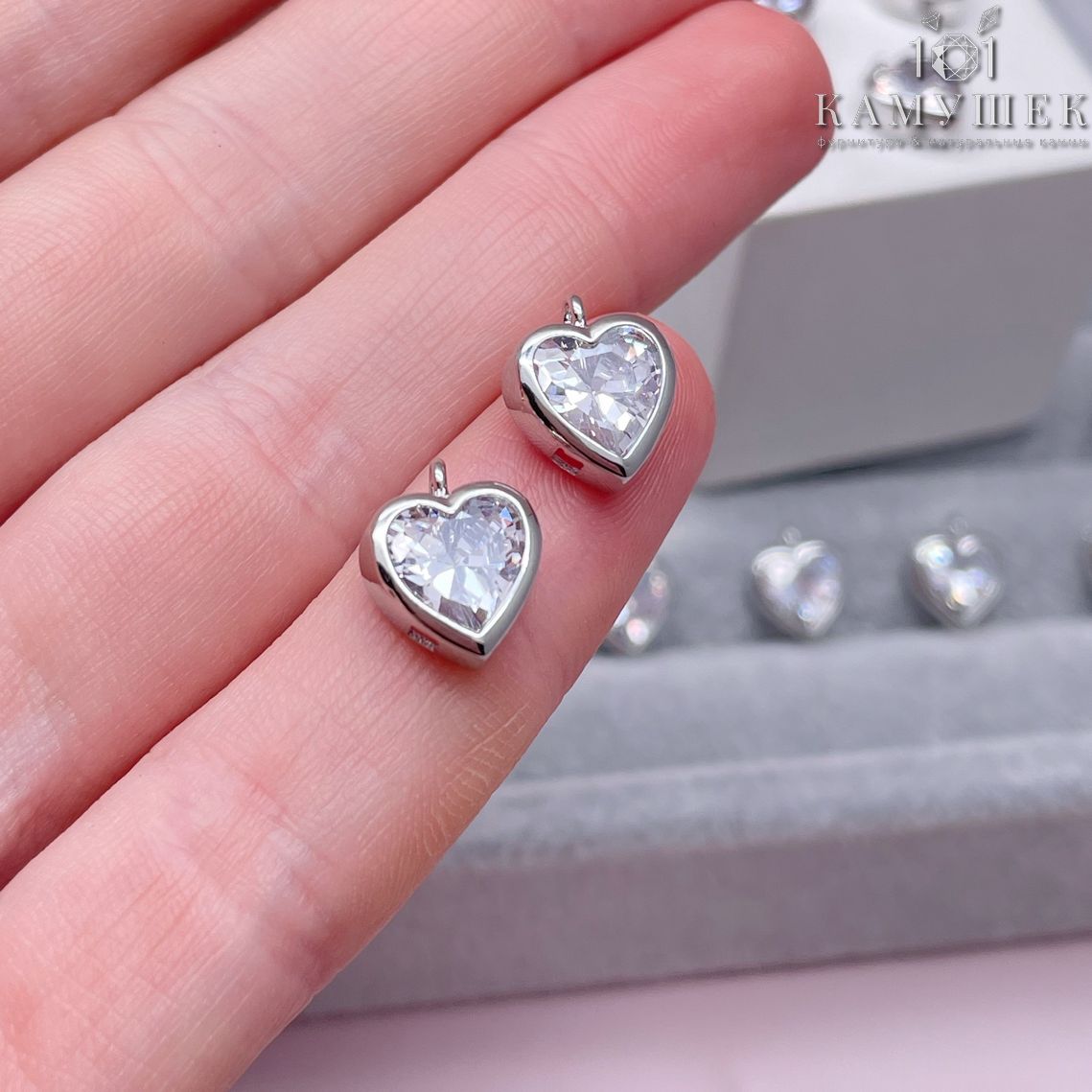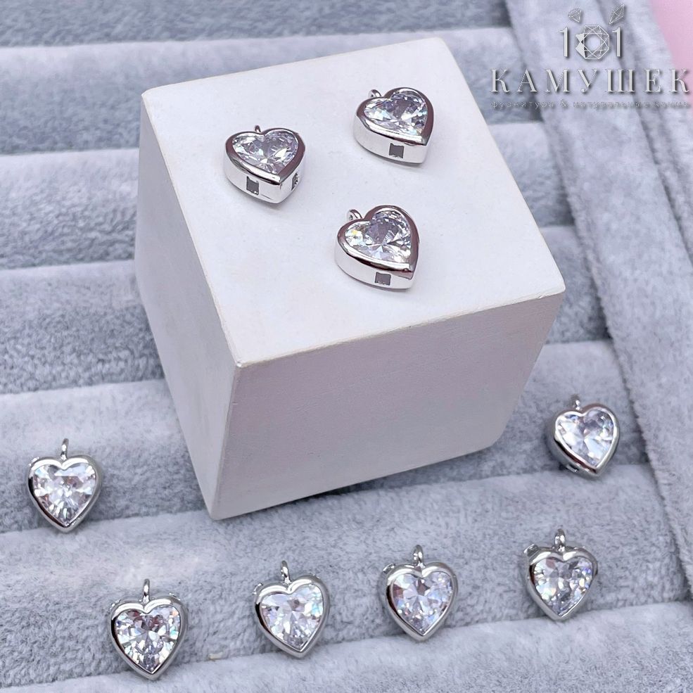 Подвеска сердце циркон, цвет серебро 9х12 мм