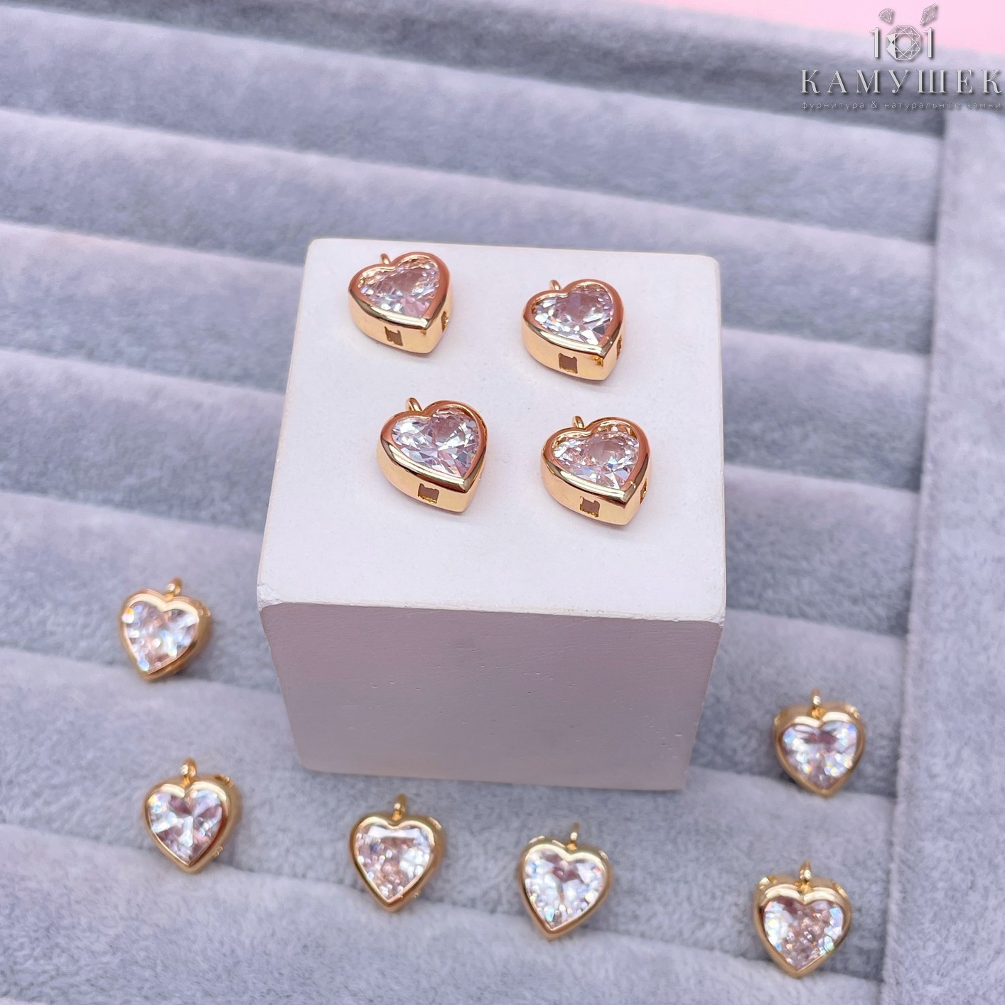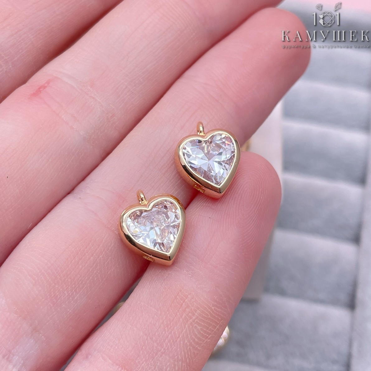 Подвеска сердце циркон, цвет золото 9х12 мм